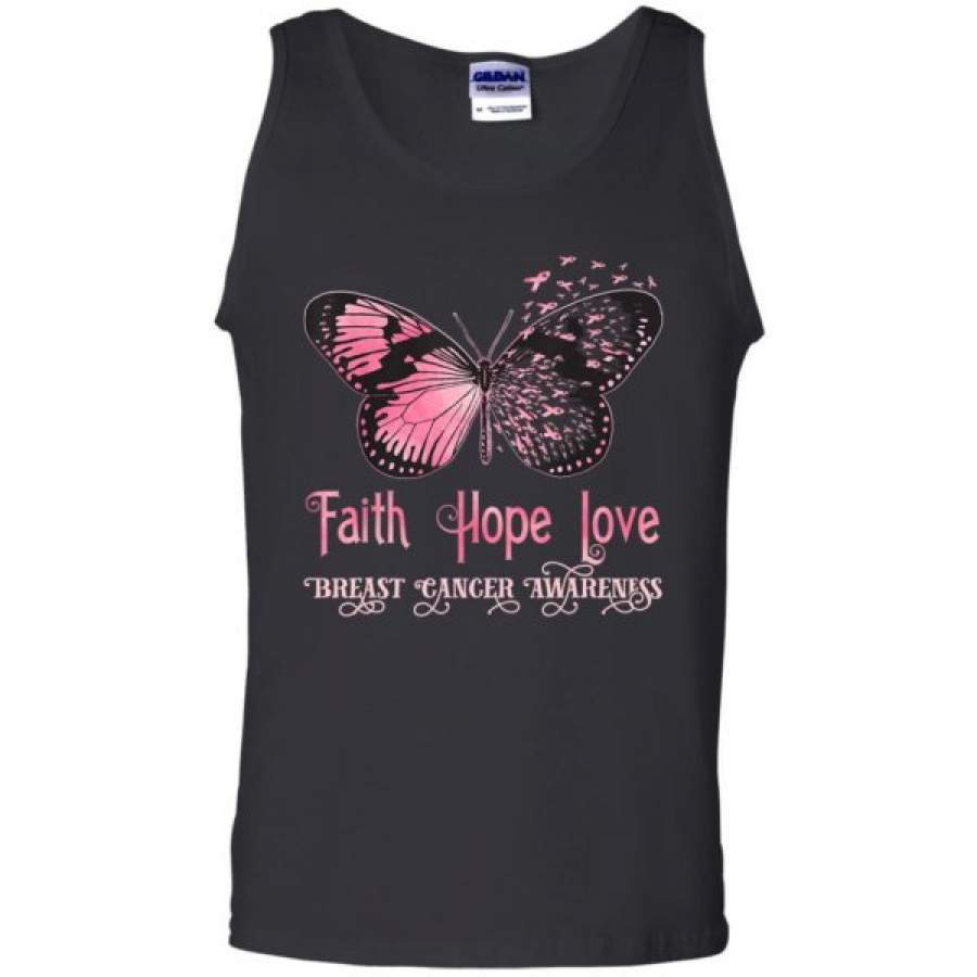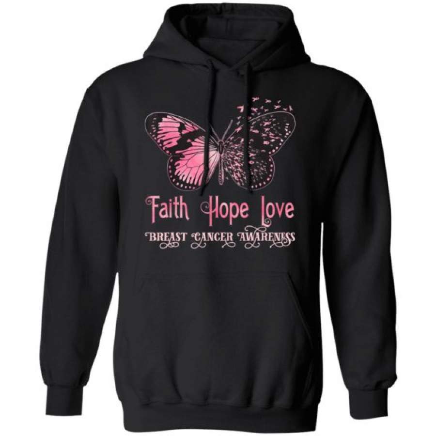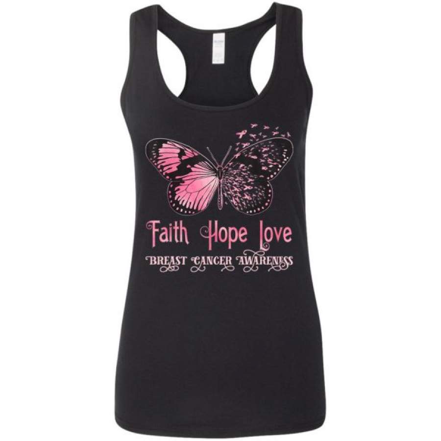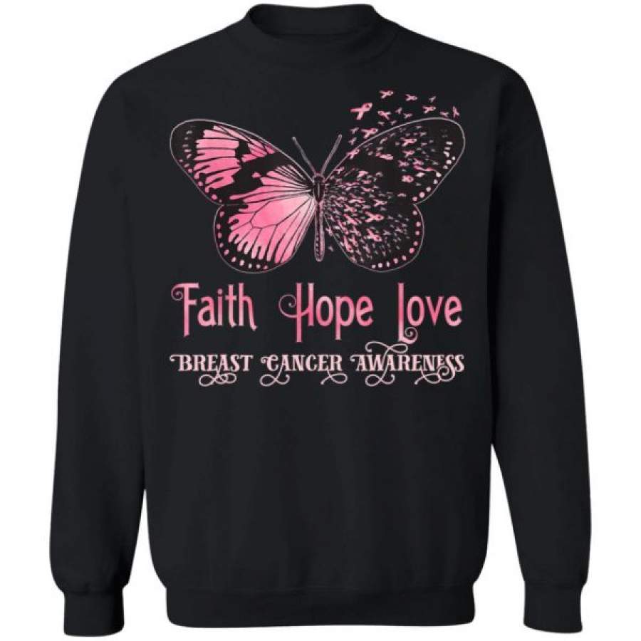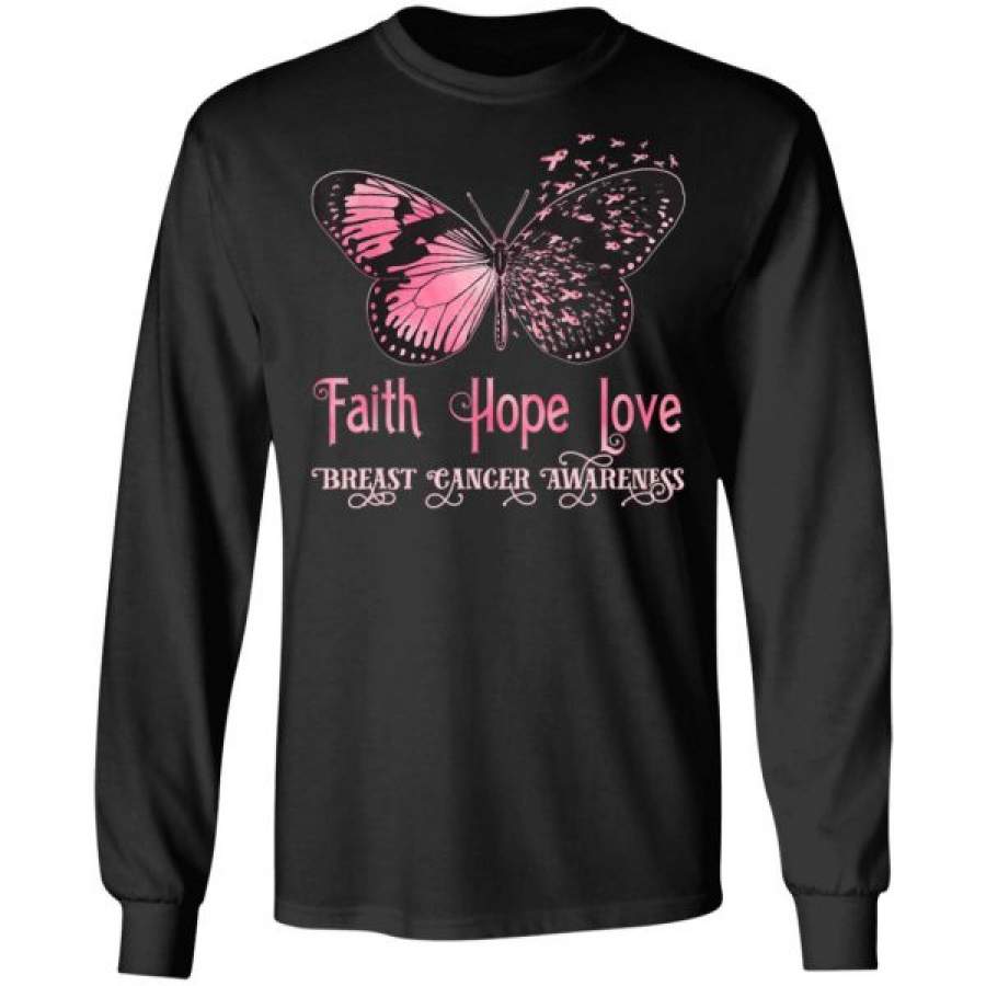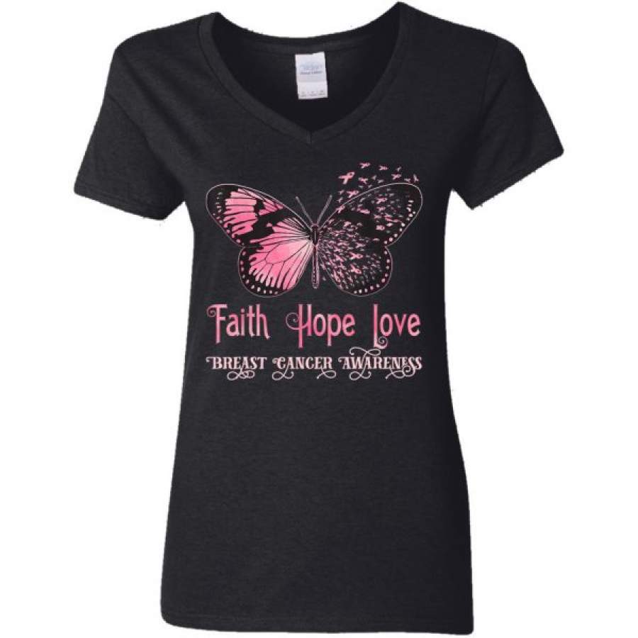 Faith Hope Love Pink Butterfly Breast Cancer Awareness Shirts