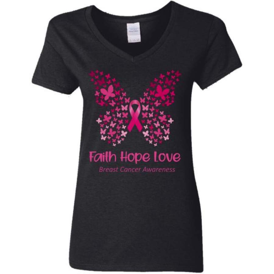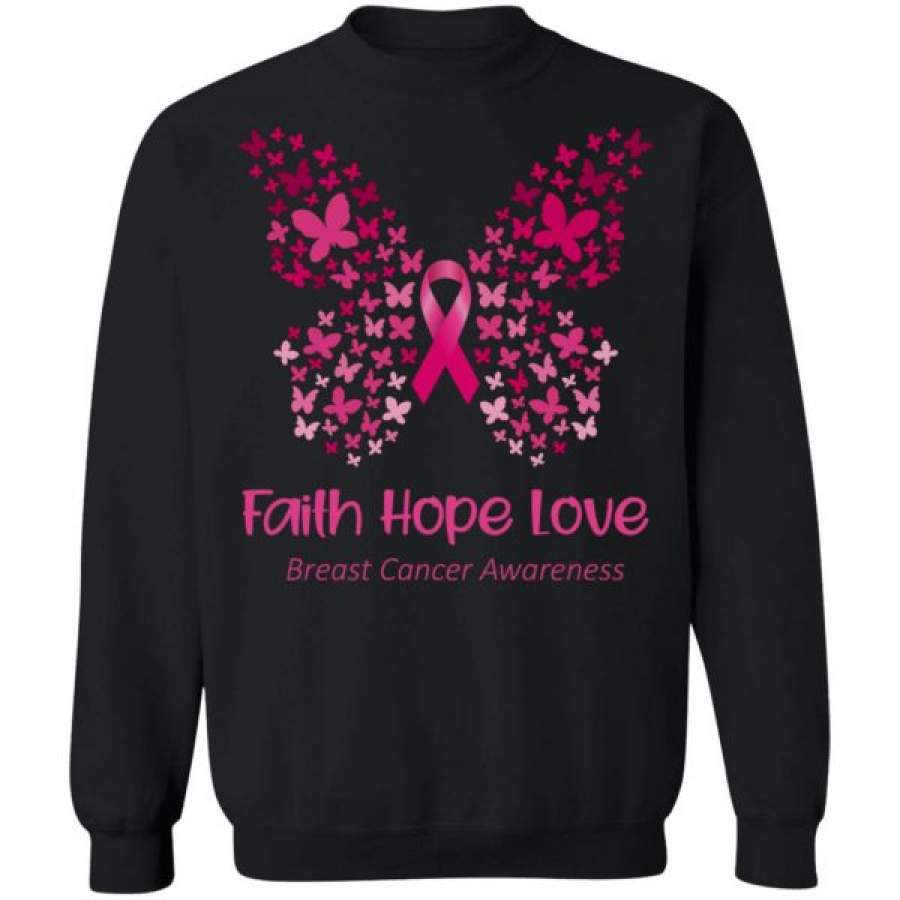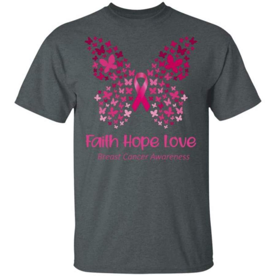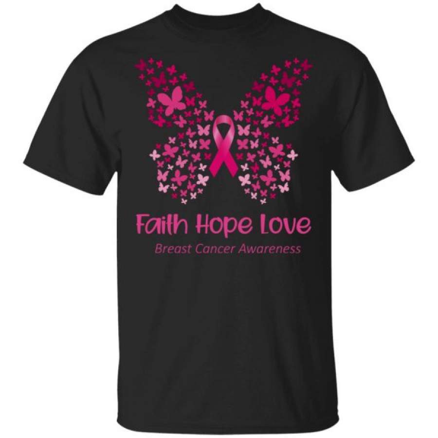 Faith Hope Love Pink Butterfly Breast Cancer Awareness T-Shirt – Cool Amazing Fashion