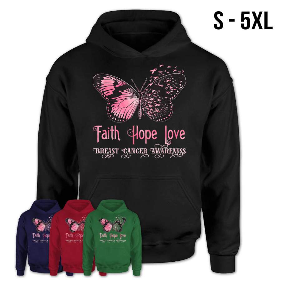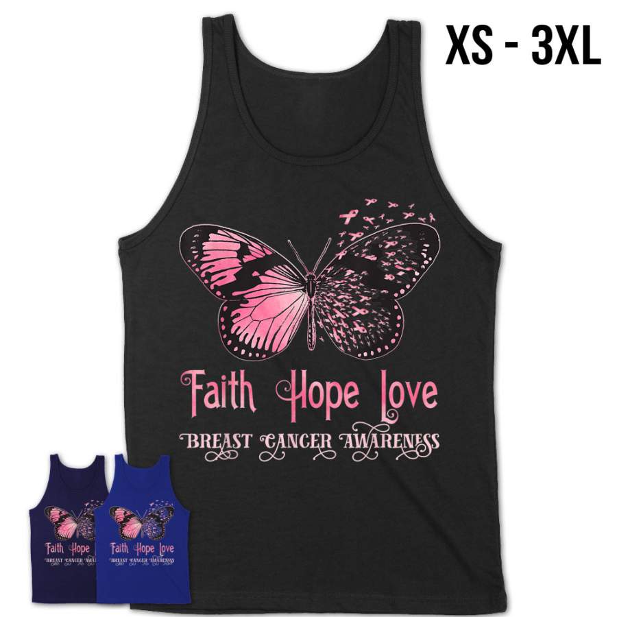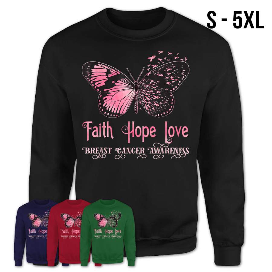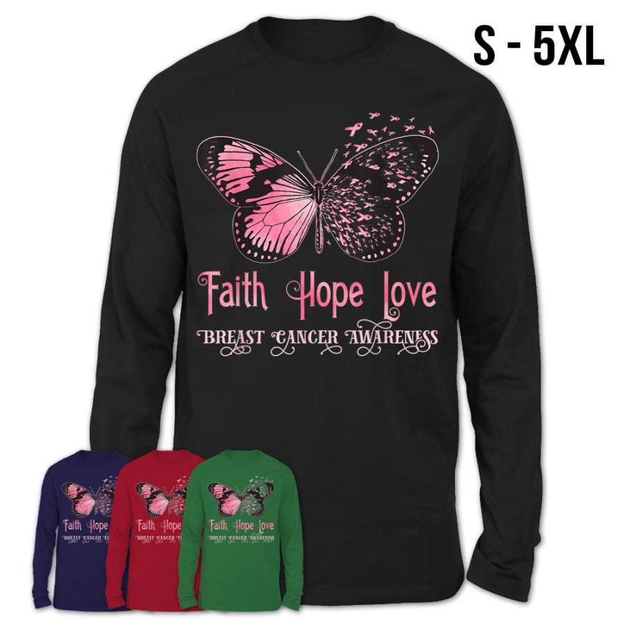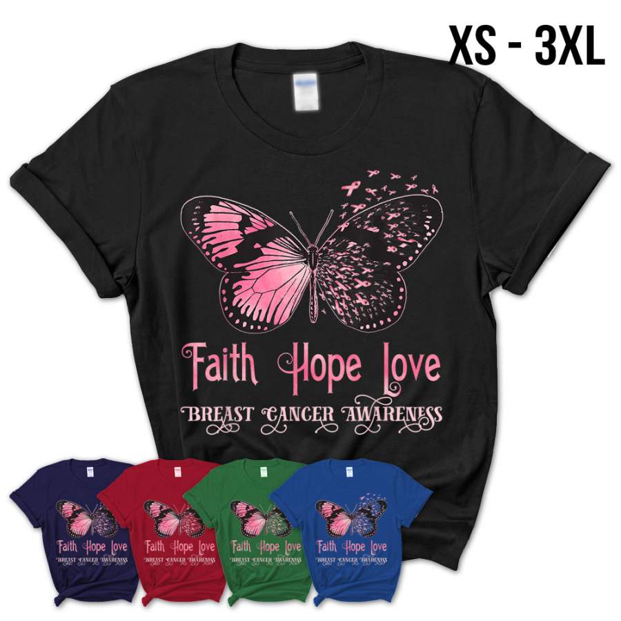 Faith Hope Love Pink Butterfly Breast Cancer Awareness T-Shirt – Teezou Store