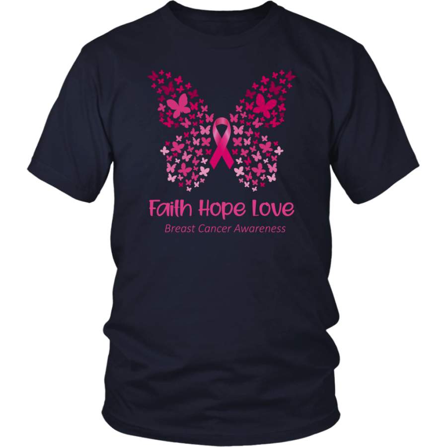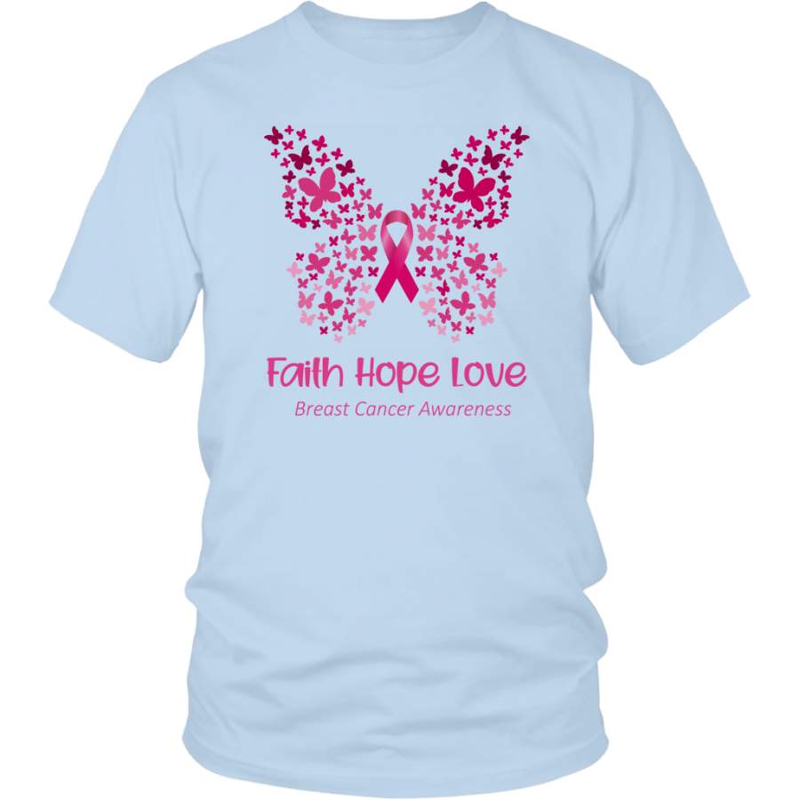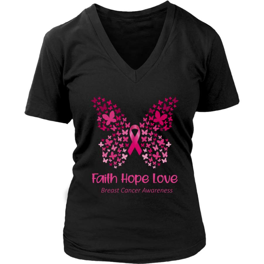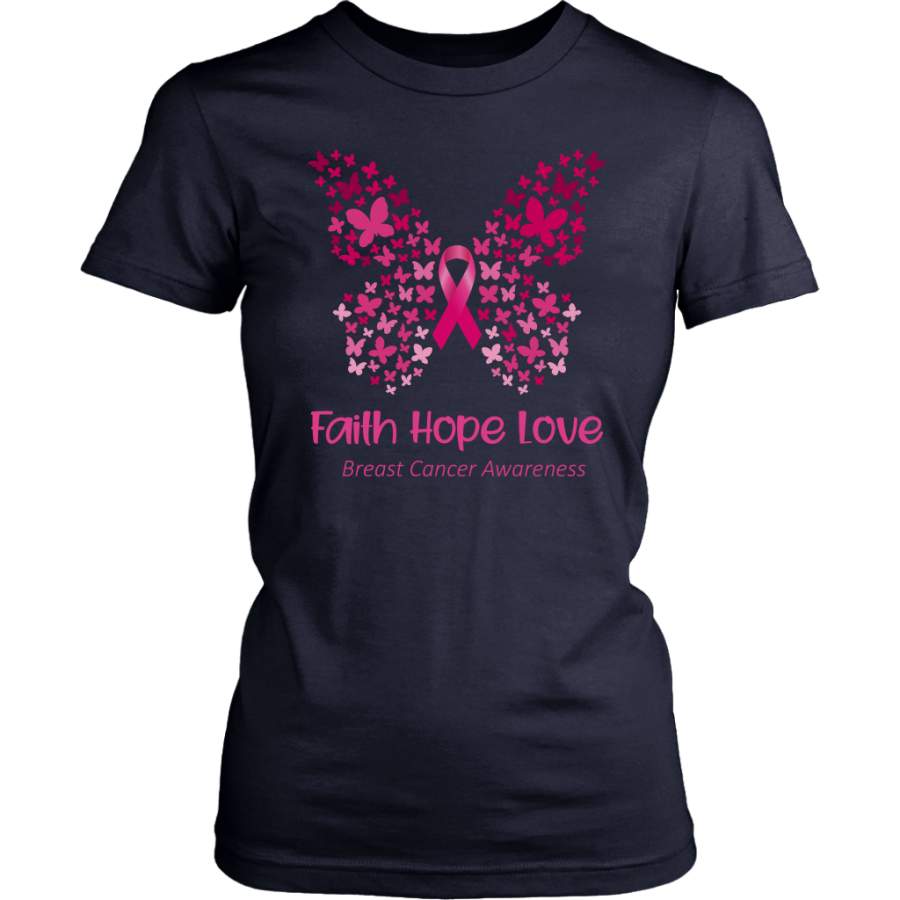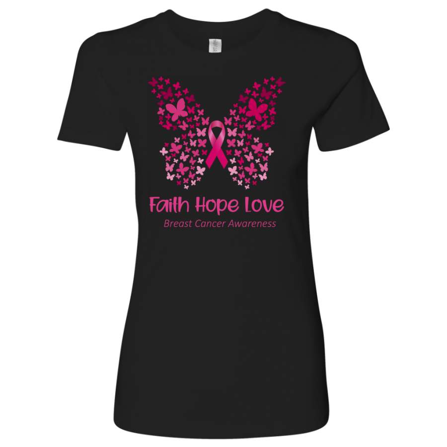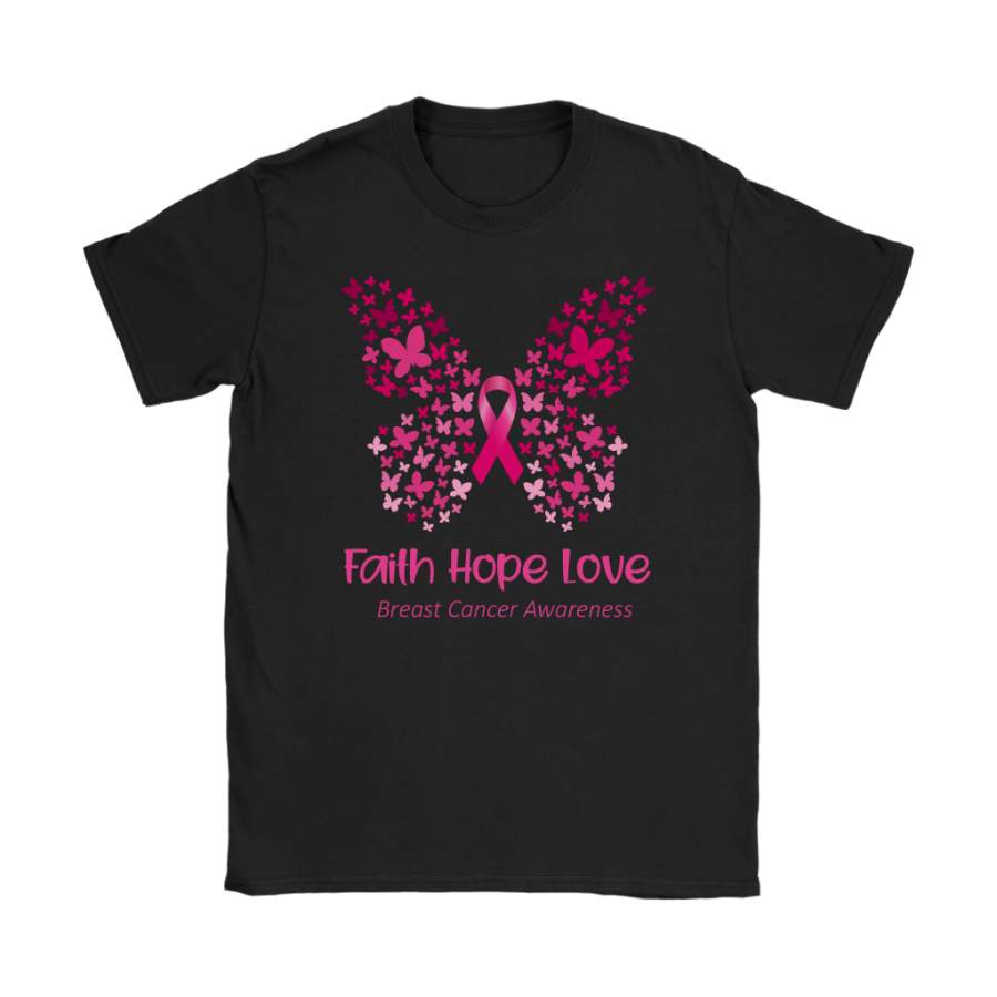 Faith Hope Love Pink Butterfly Breast Cancer Awareness T-Shirt