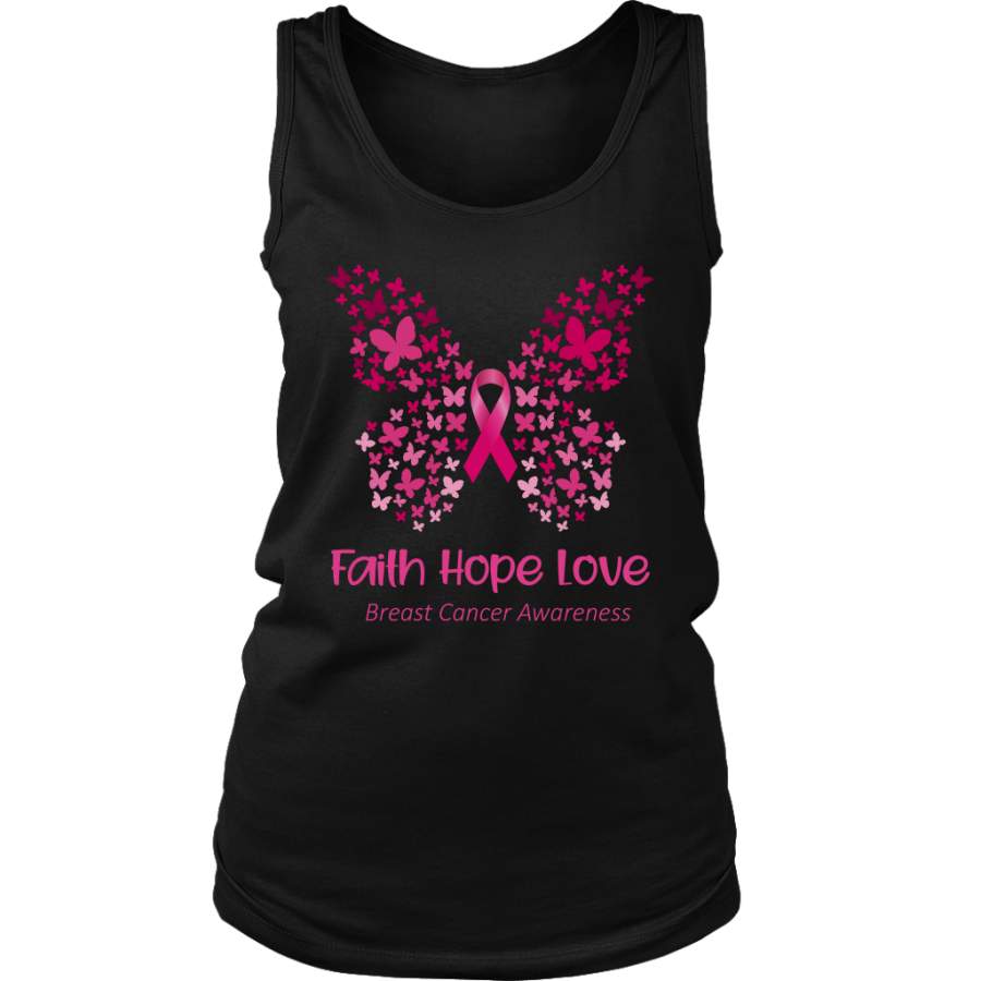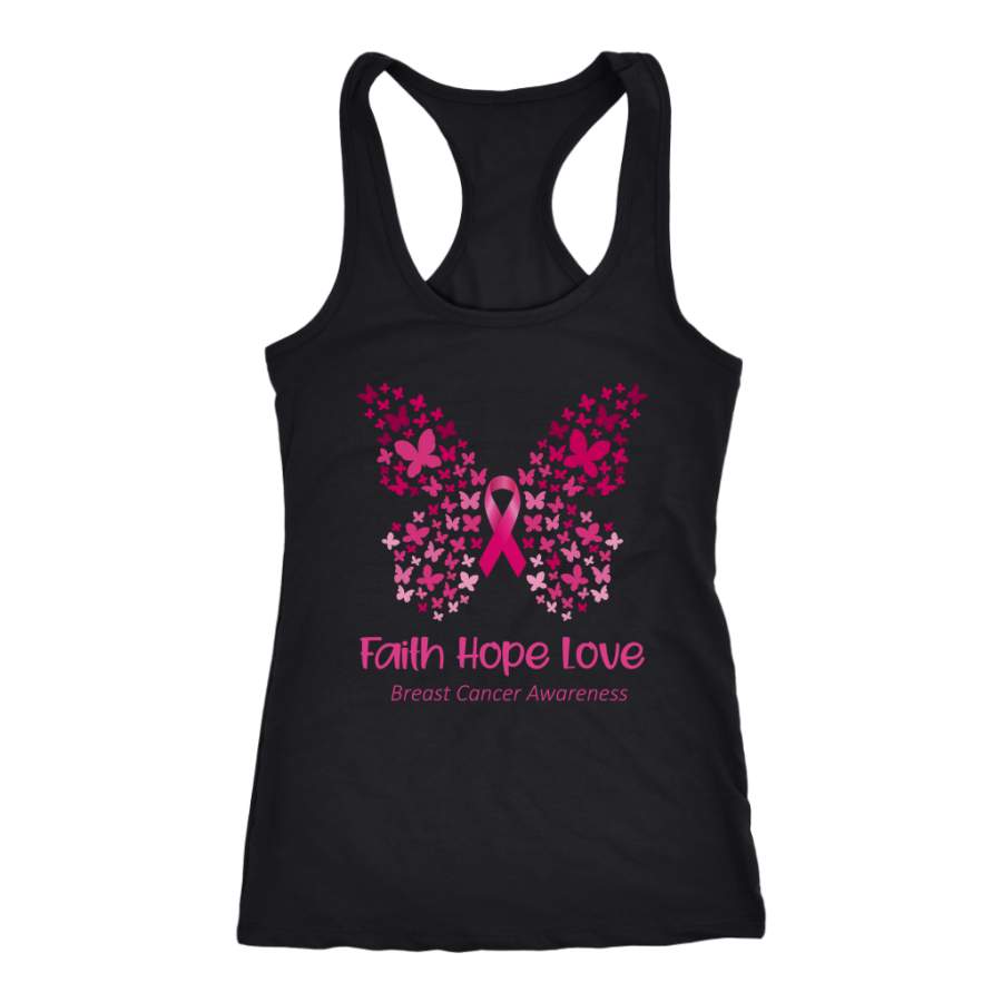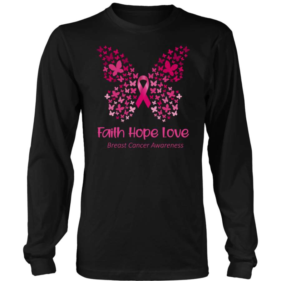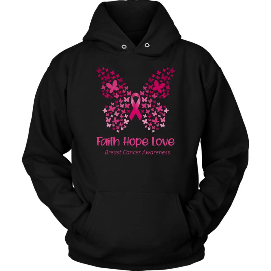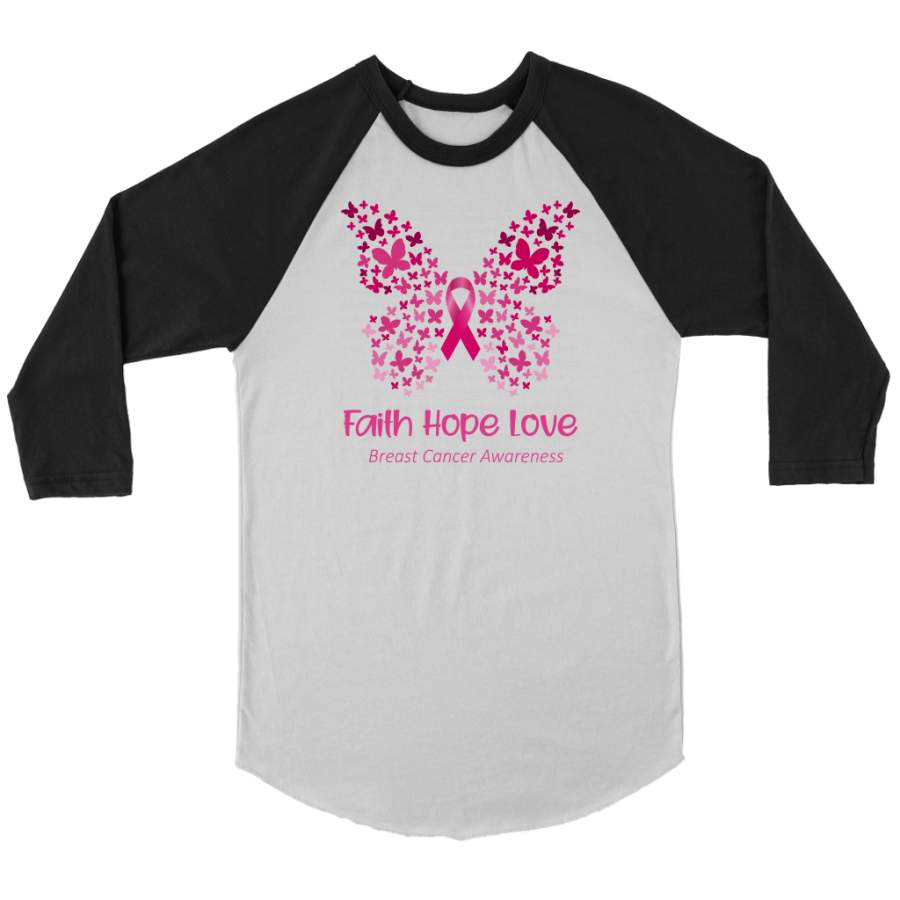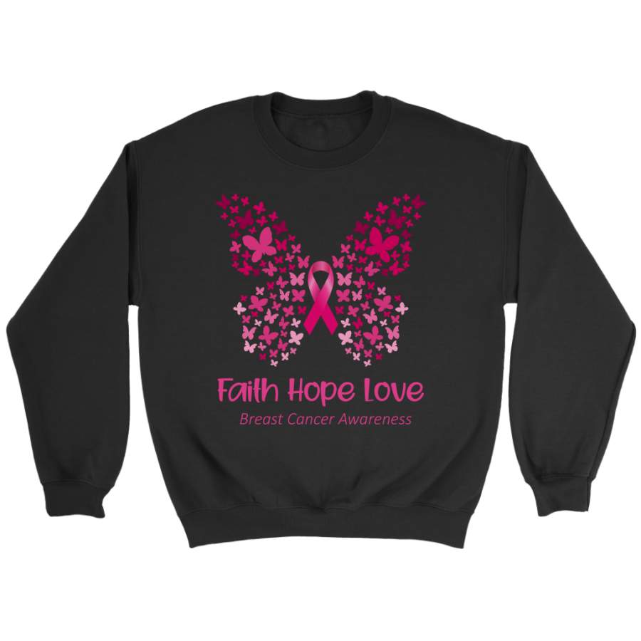 Faith Hope Love Pink Butterfly Breast Cancer Awareness T-Shirt