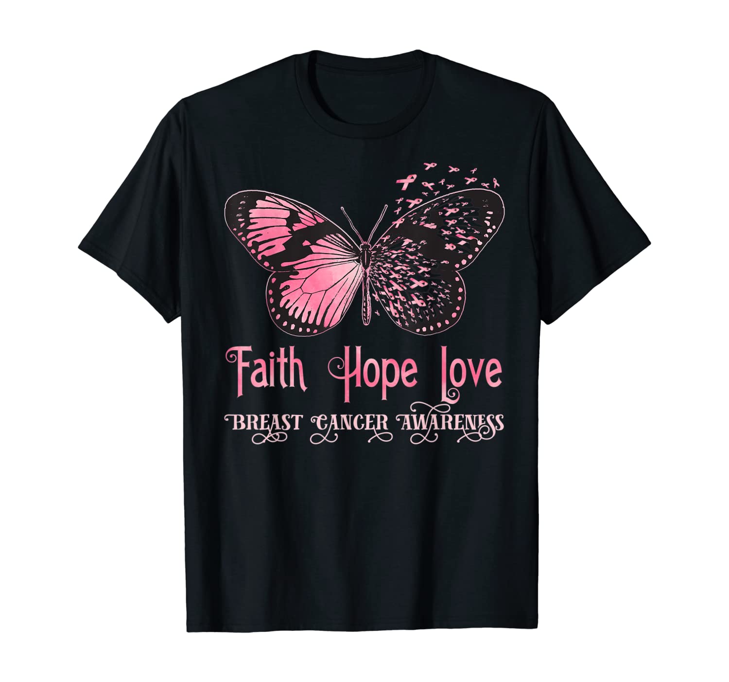 Faith Hope Love Pink Butterfly Breast Cancer Awareness T-Shirt,Hoodie,Sweatshirt
