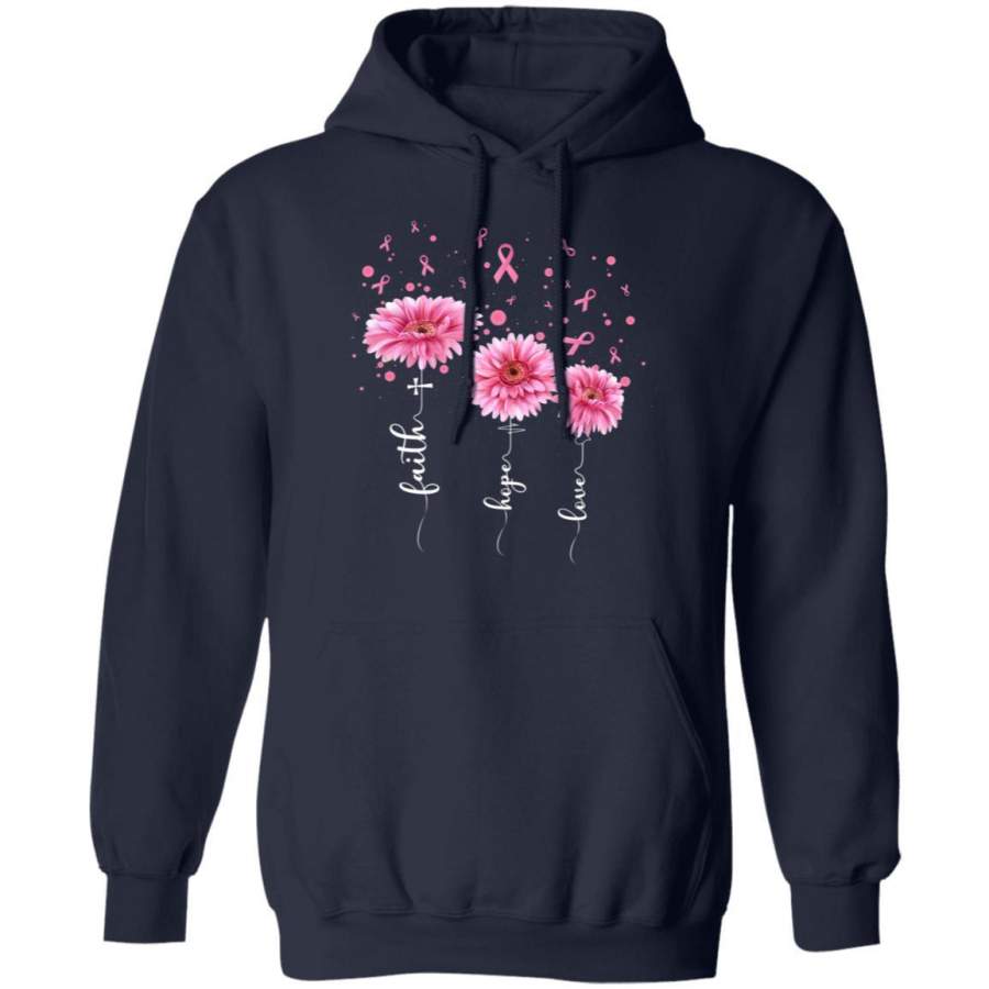 Faith Hope Love Pink Daisy Flower Breast Cancer Awareness Hoodie