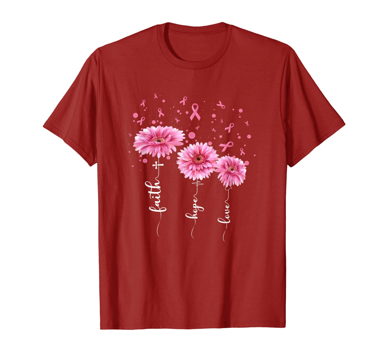 Faith Hope Love : Pink Daisy Flower Breast Cancer Awareness T-Shirt Long Sleeve,Hoodie