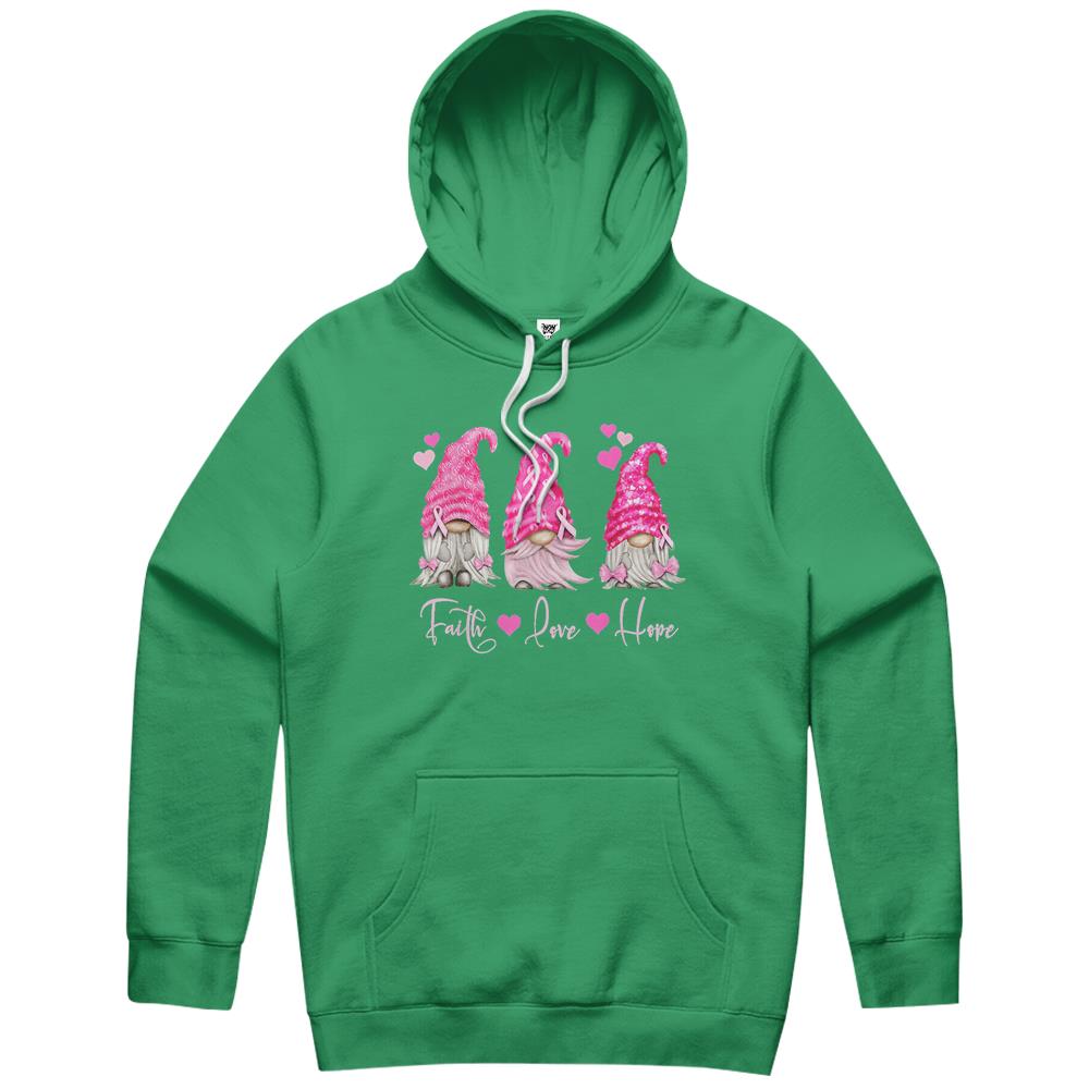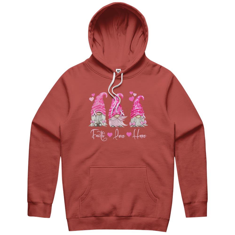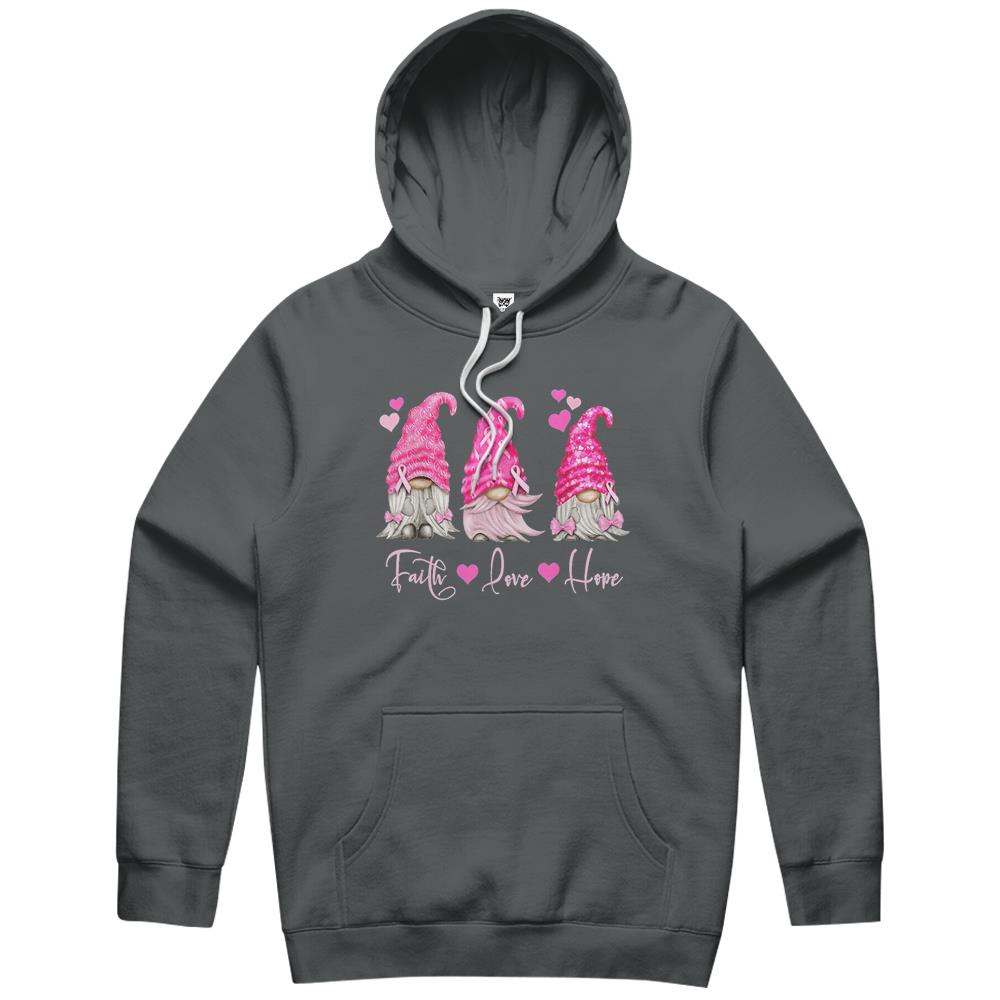 Faith Hope Love Pink Gnome Breast Cancer Awareness Hoodie