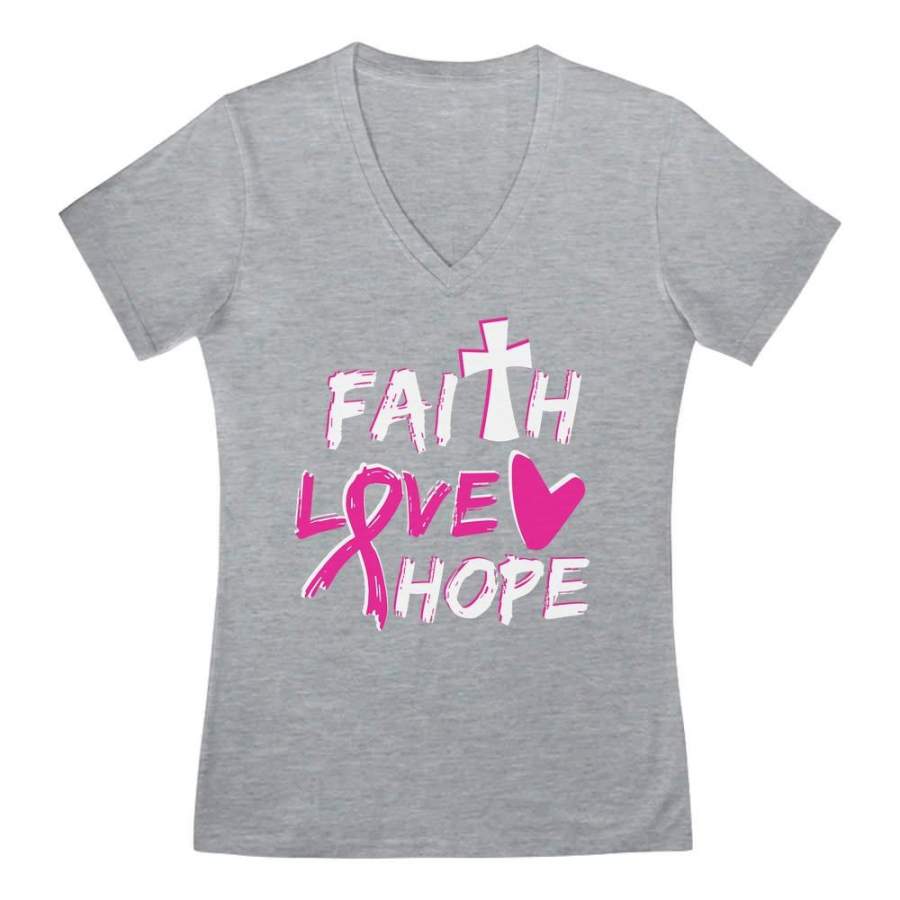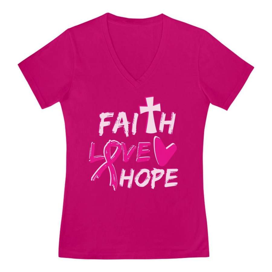 Faith Love Hope Breast Cancer Awareness V-Neck Fitted Women T-Shirt