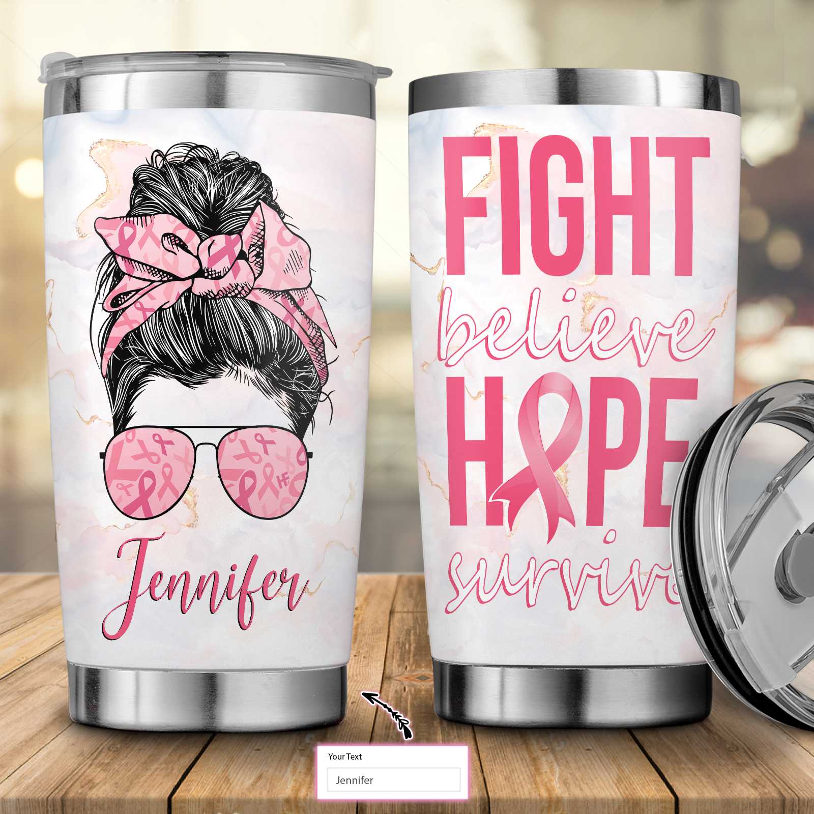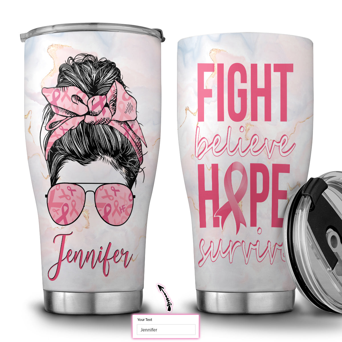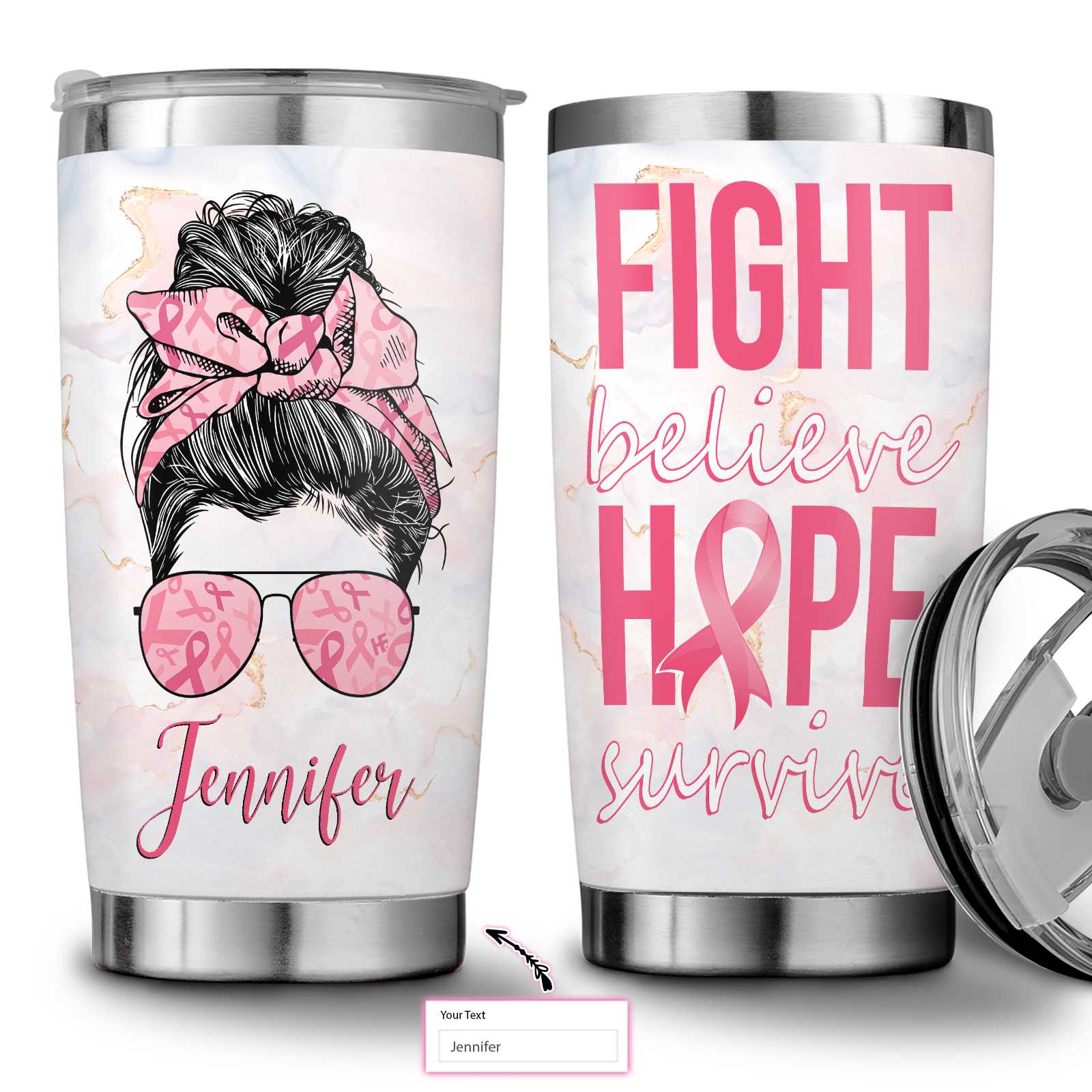 Fight Believe Hope Survive Breast Cancer Awareness Custom Stainless Steel Tumbler, Personalized Stainless Steel Cup With Lid