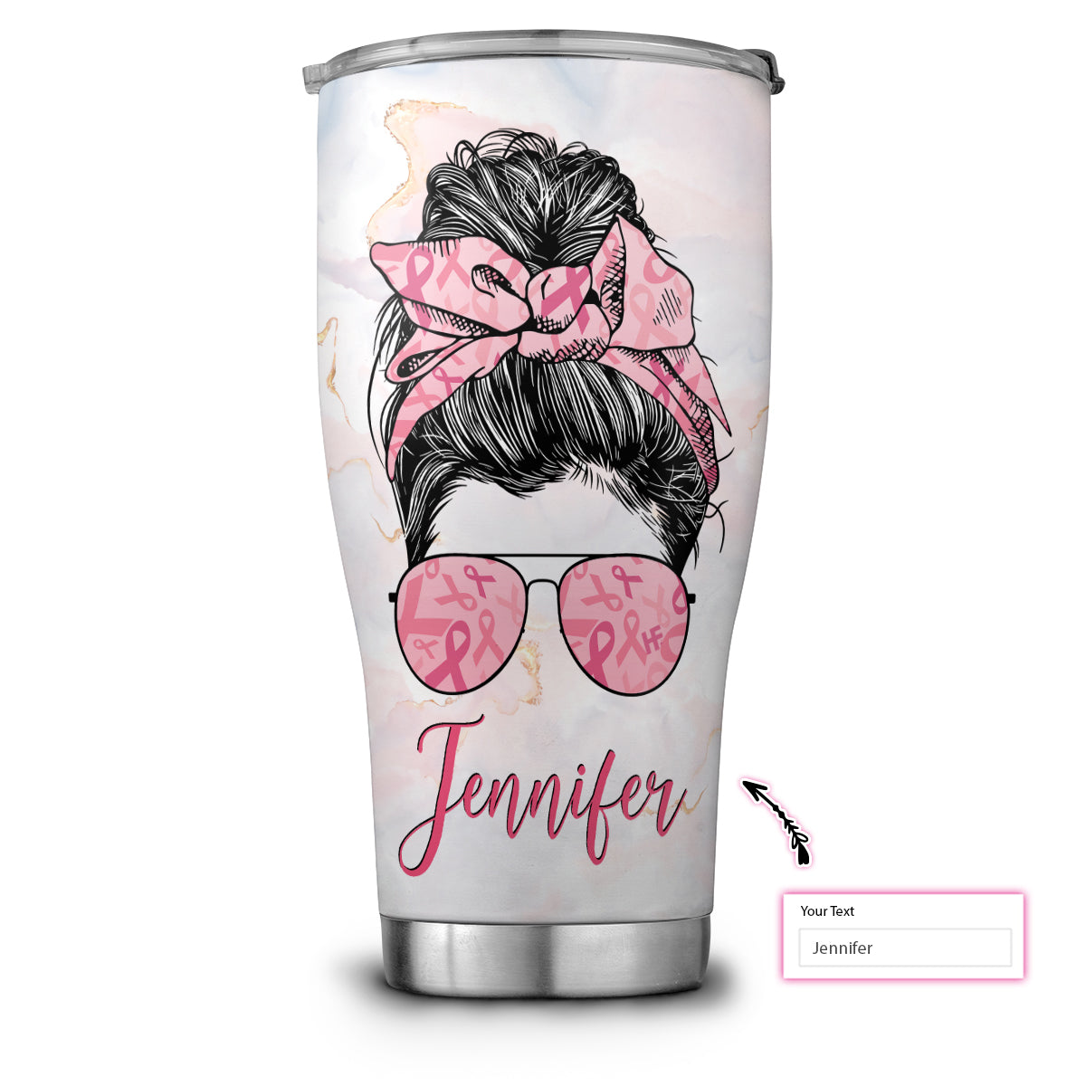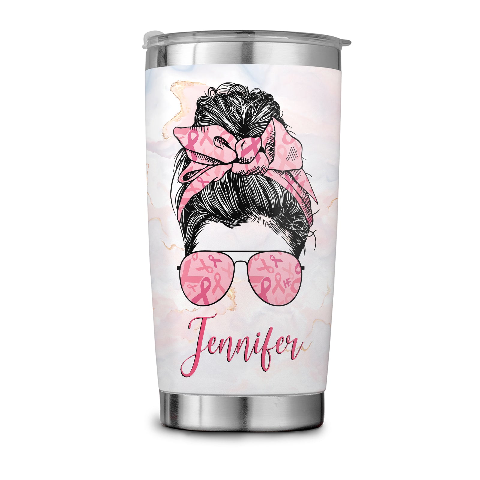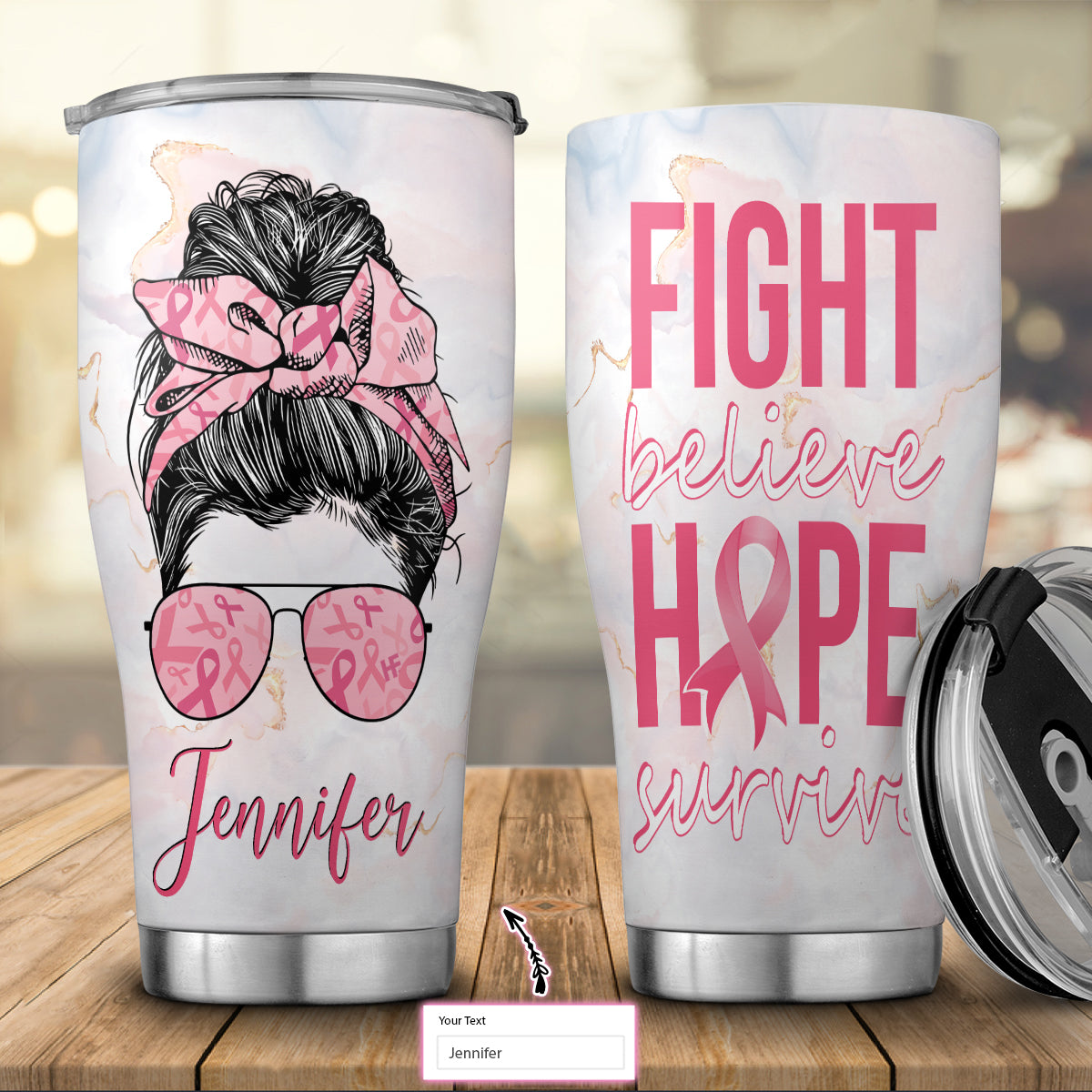 Fight Believe Hope Survive Breast Cancer Awareness Custom Stainless Steel Tumbler, Personalized Stainless Steel Cup With Lid