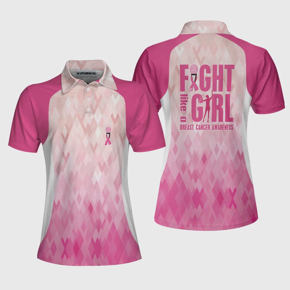 Fight Like A Girl Breast Cancer Awareness Short Sleeve Women Polo Shirt