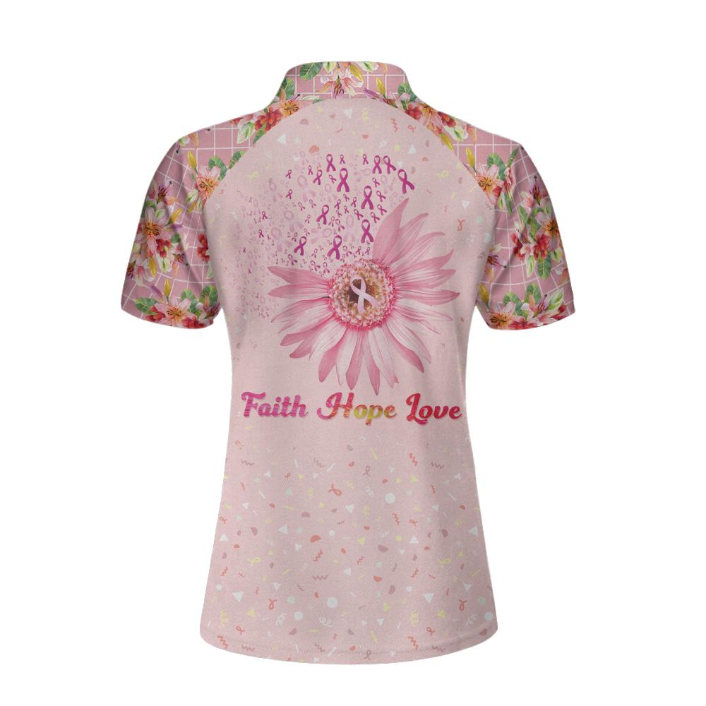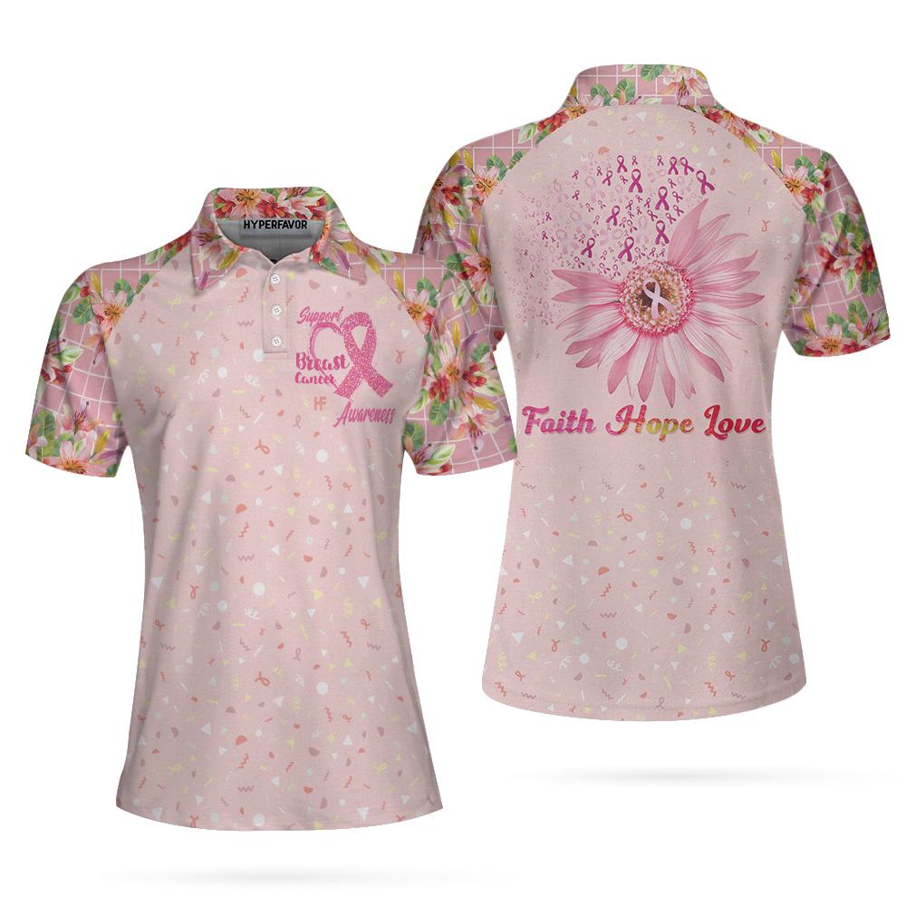 Fight Love Hope Breast Cancer Awareness Short Sleeve Women Polo Shirt