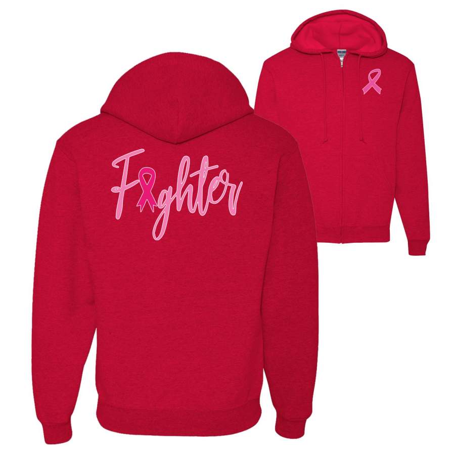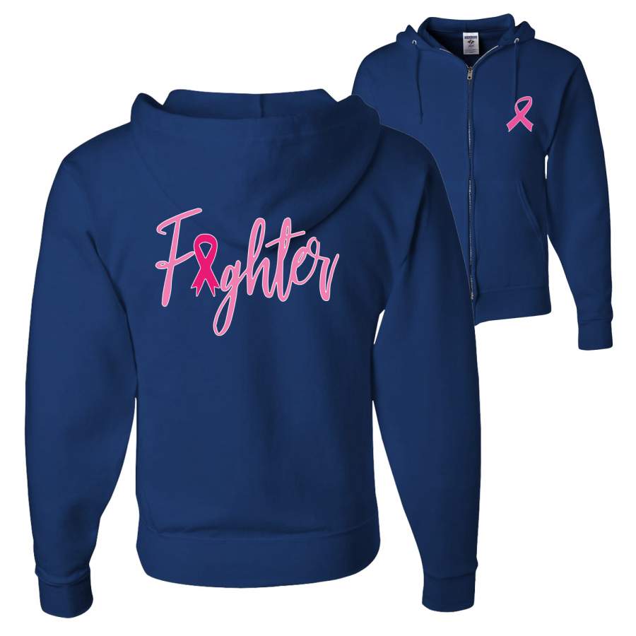 Fighter Breast Cancer Survivor Breast Cancer Awareness Front and Back Graphic Zip Up Hoodie Sweatshirt