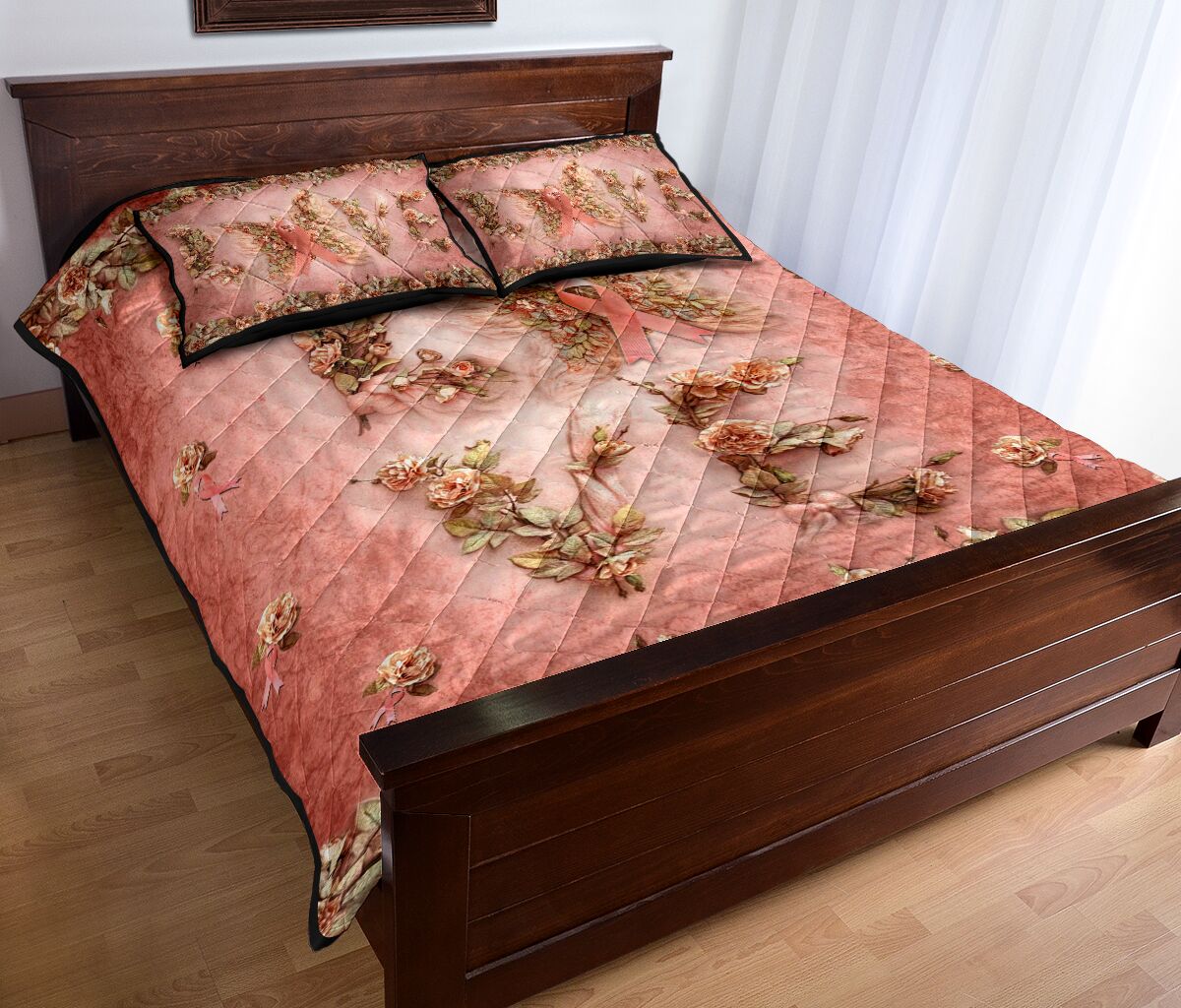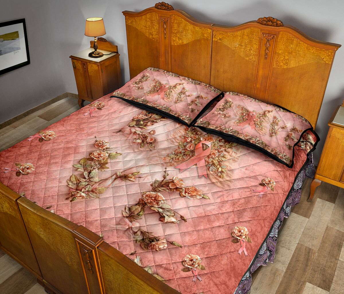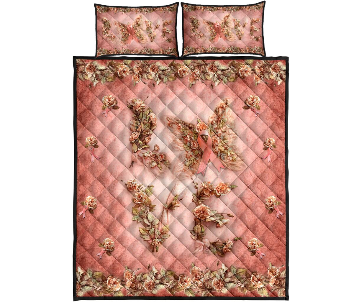 Floral Love Butterfly Breast Cancer Awareness Quilt Set 0622