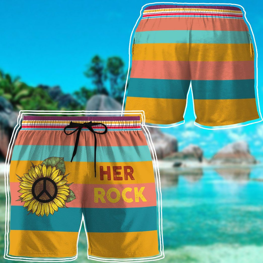 Flowermoonz 3D Couple Matching Her Rock Custom Beach Shorts Swim Trunk
