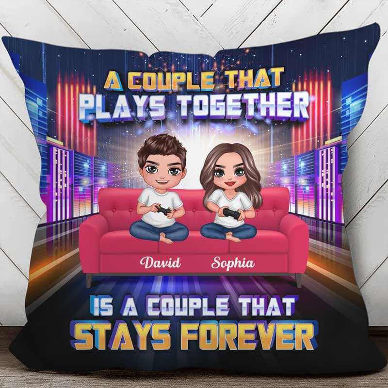 Gaming Couple On Sofa Personalized Pillow (Insert Included)
