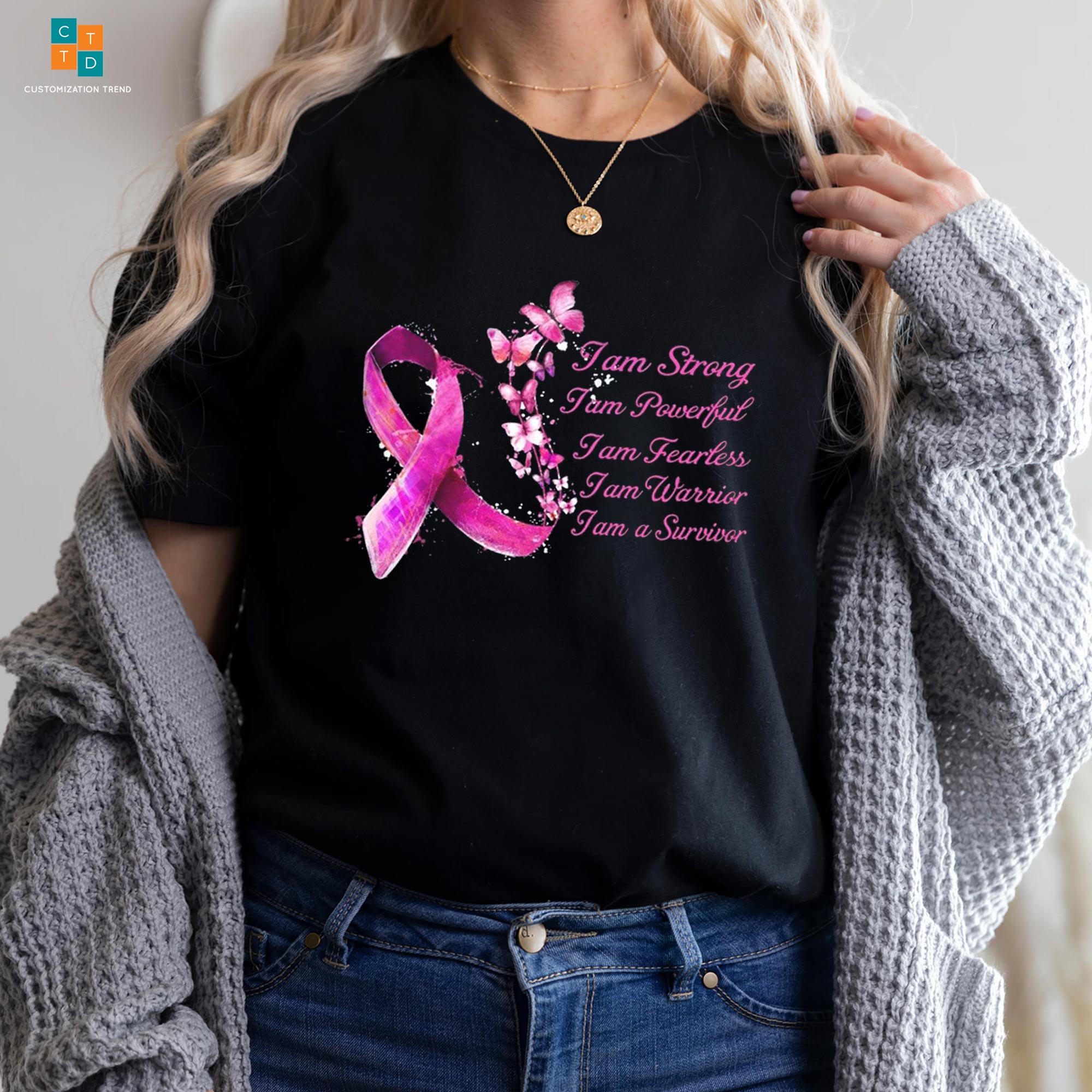 I Am Strong Butterfly Breast Cancer Awareness Hoodie, Shirt