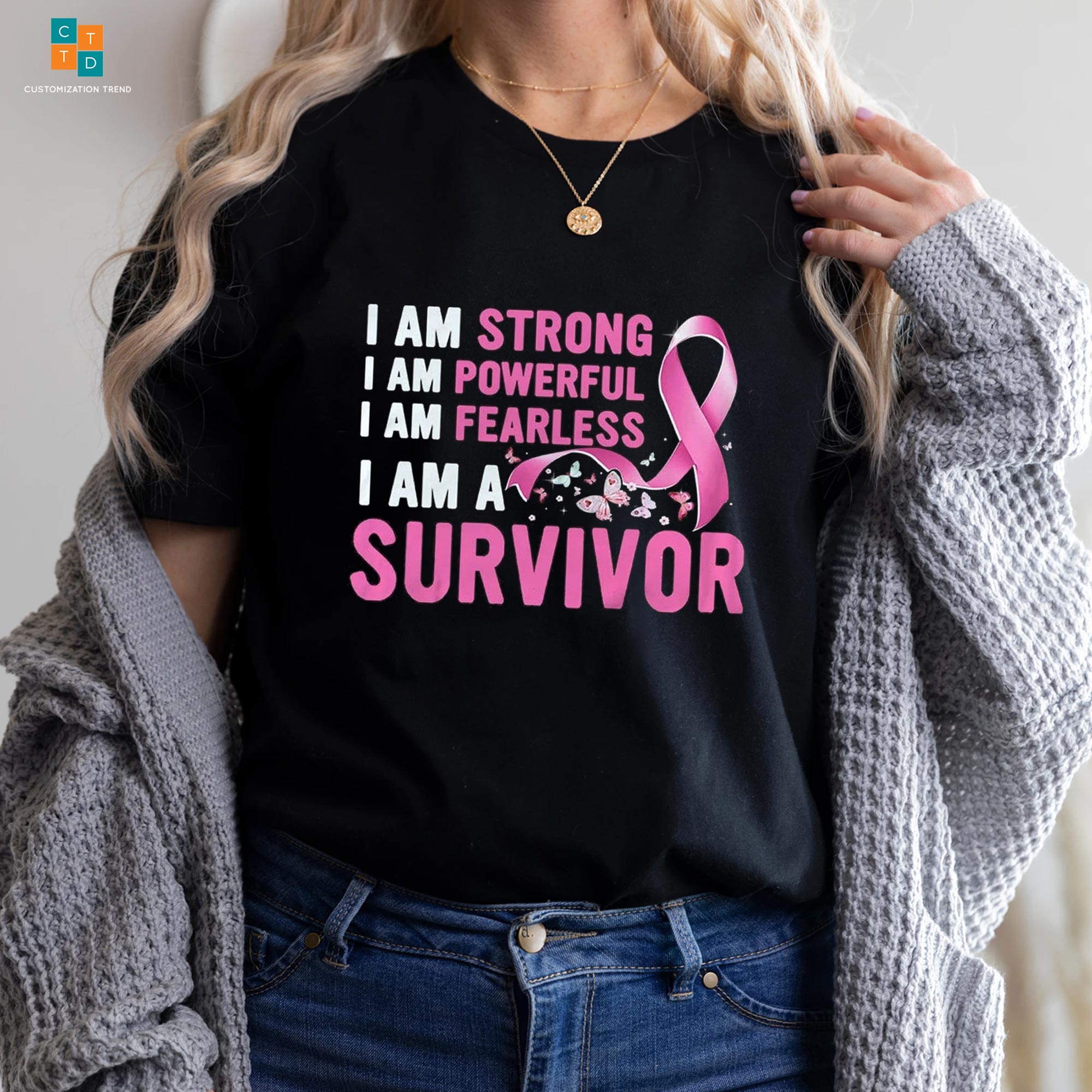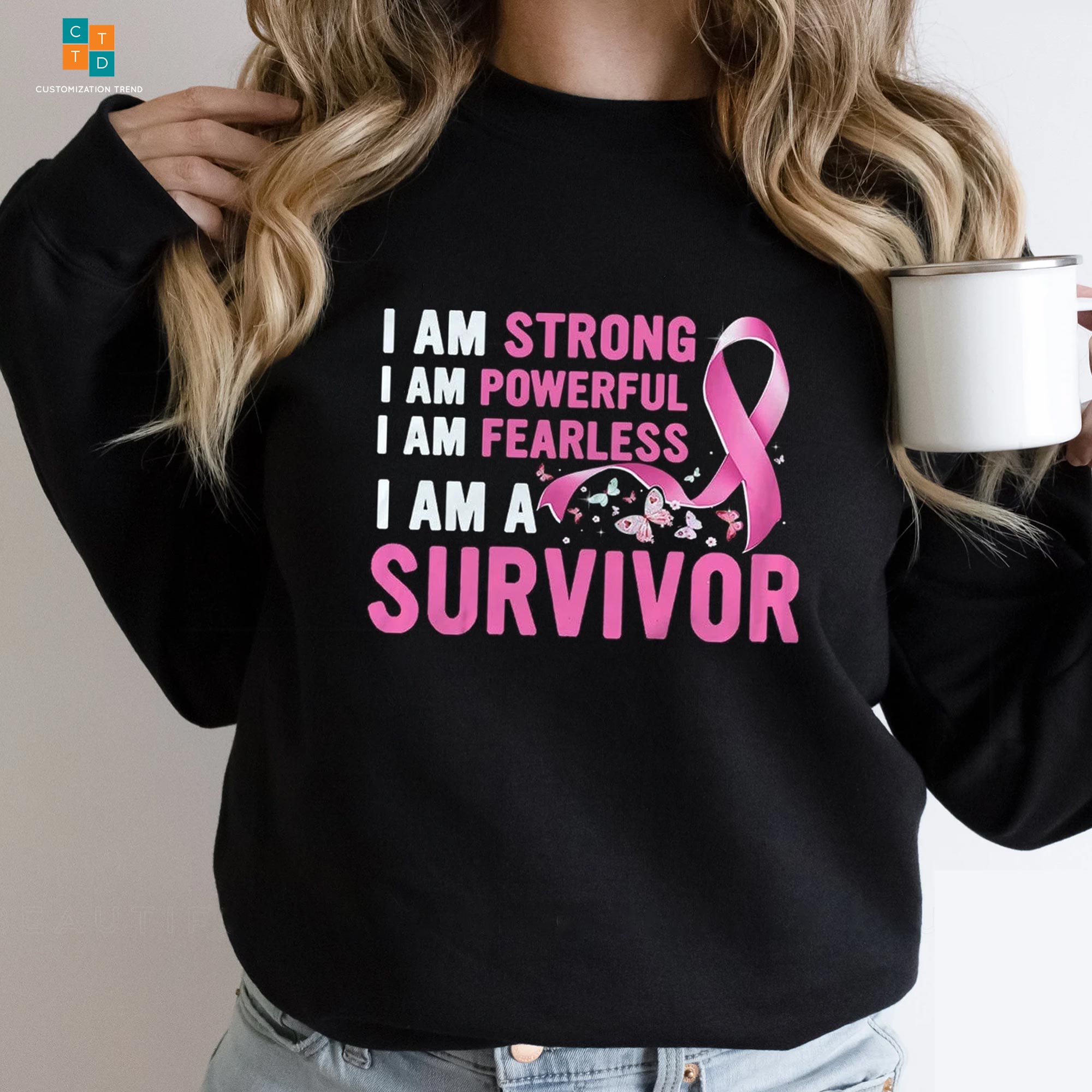 I Am Strong I Am Powerful I Am Fearless I Am A Survivor Breast Cancer Awareness Hoodie, Shirt