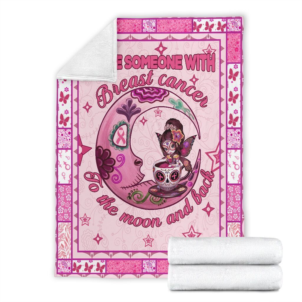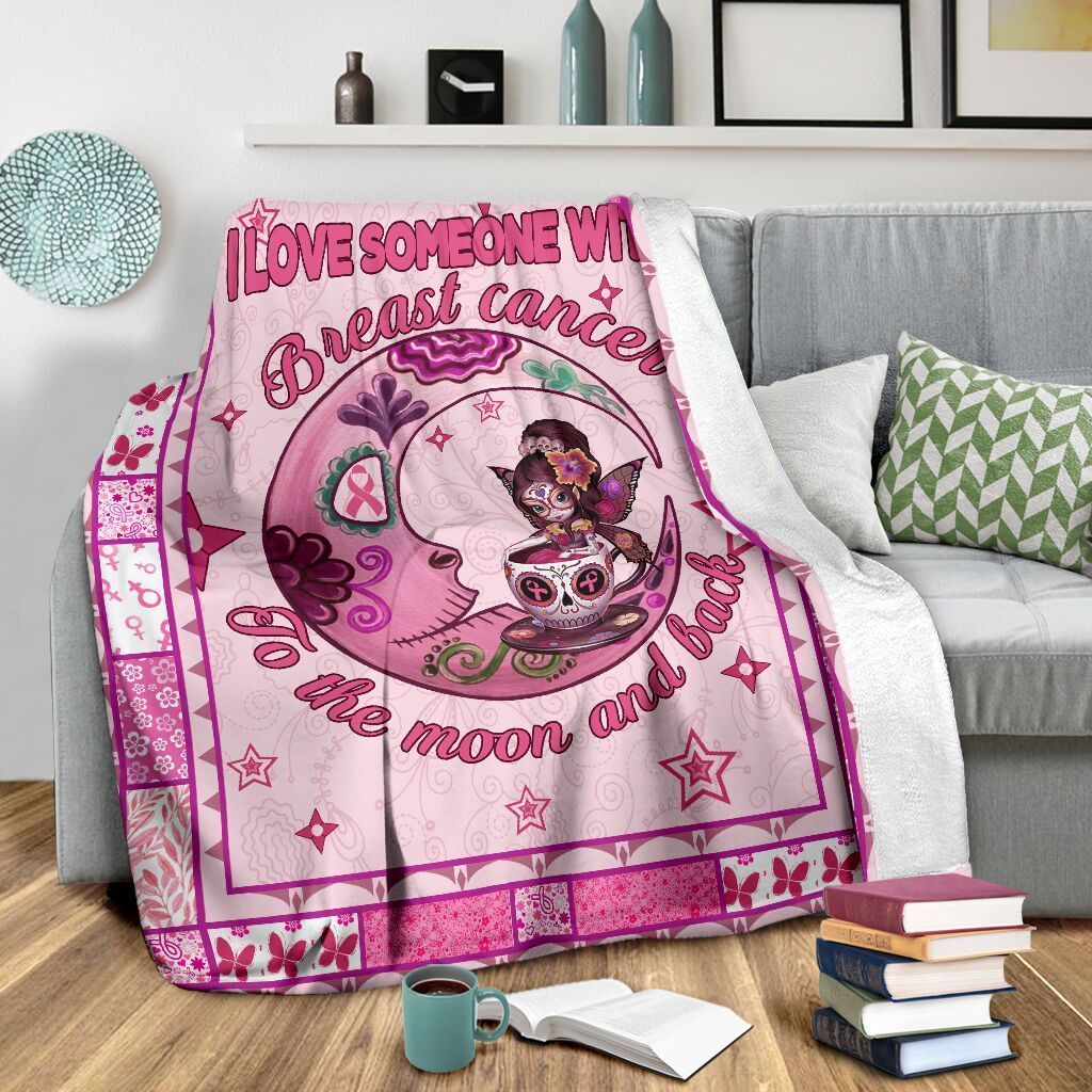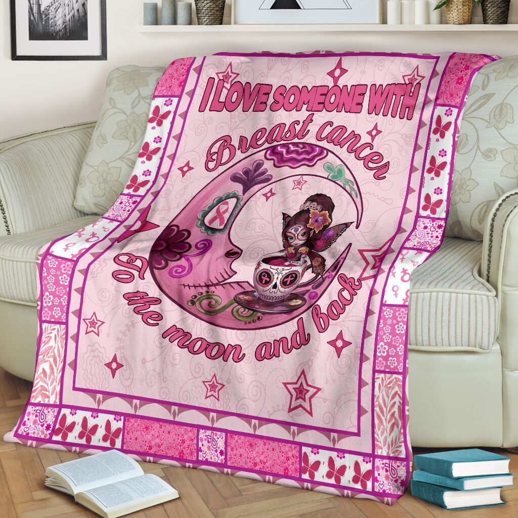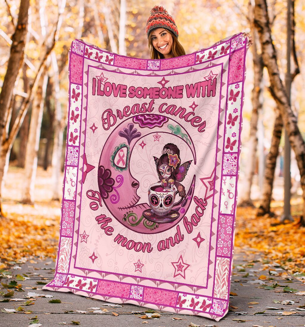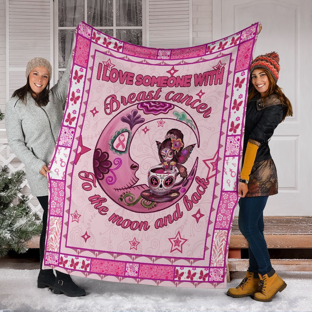 I Love Someone With Breast Cancer Awareness Fairy Sugar Skull Butterfly Customize Design, Personalized Fleece Blanket Print 3D
