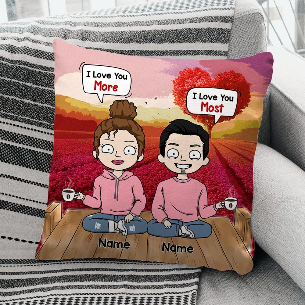 I Love You More I Love You Most Couple Drink Coffee Pillow Couple Valentines Day Pillow Mr And Mrs Tree Heart Couple Pillow