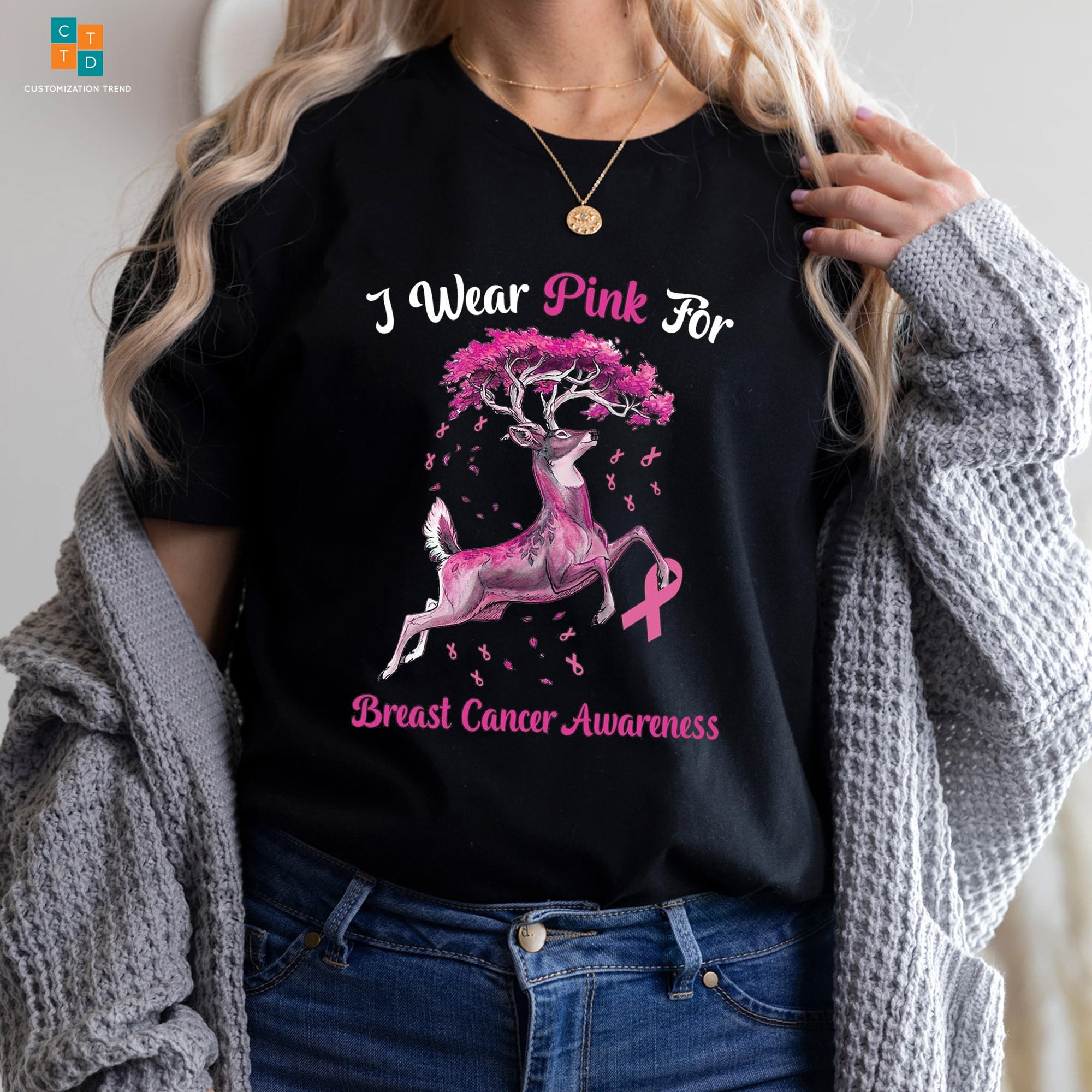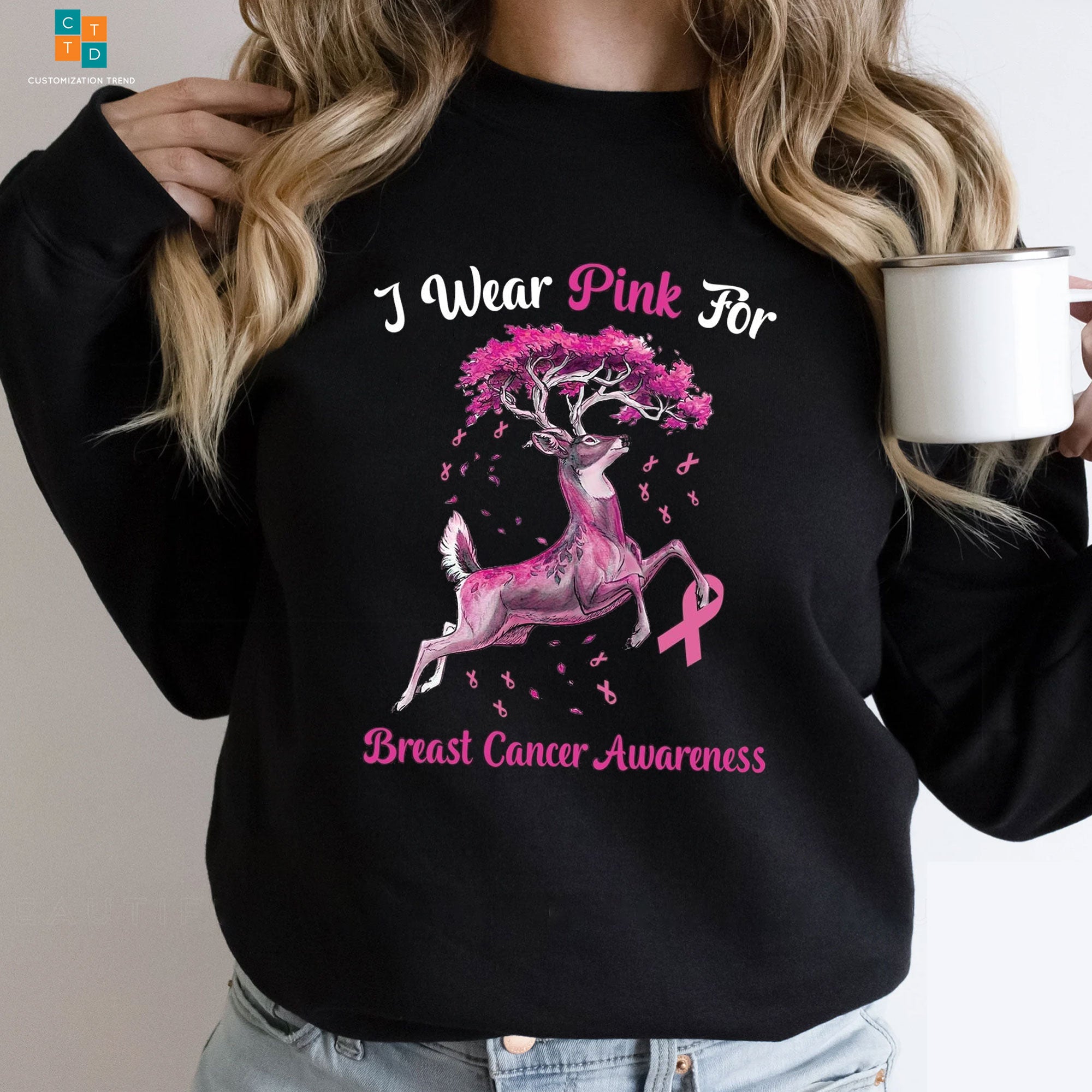 I Wear Pink For Deer Breast Cancer Awareness Hoodie, Shirt