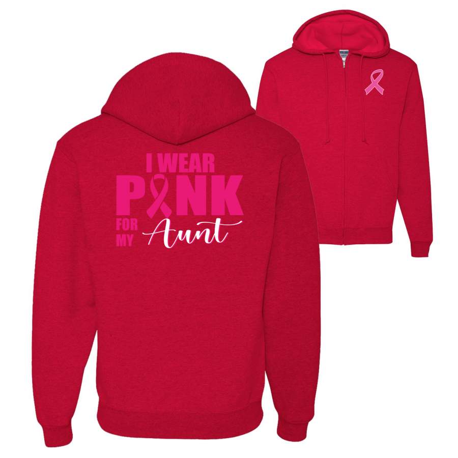 I Wear Pink for My Aunt Survivor Breast Cancer Awareness Front and Back Graphic Zip Up Hoodie Sweatshirt