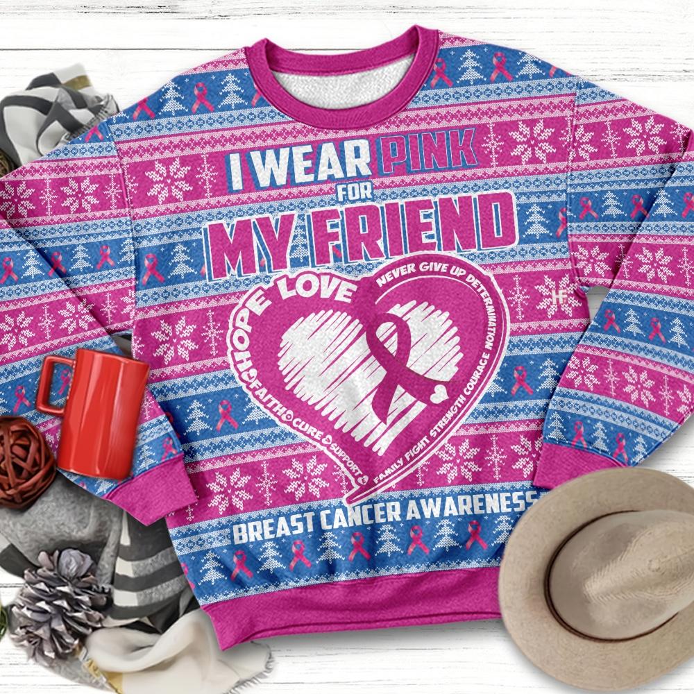 I Wear Pink For My Friend Breast Cancer Awareness Ez23 1510 All Over Print Sweatshirt