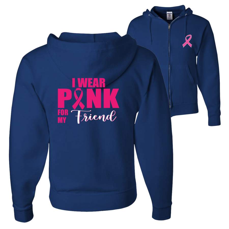 I Wear Pink for My Friends Survivor Breast Cancer Awareness Front and Back Graphic Zip Up Hoodie Sweatshirt