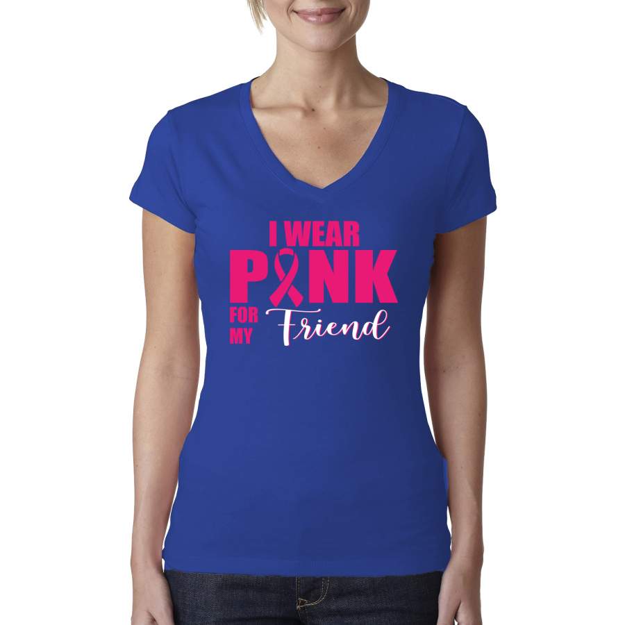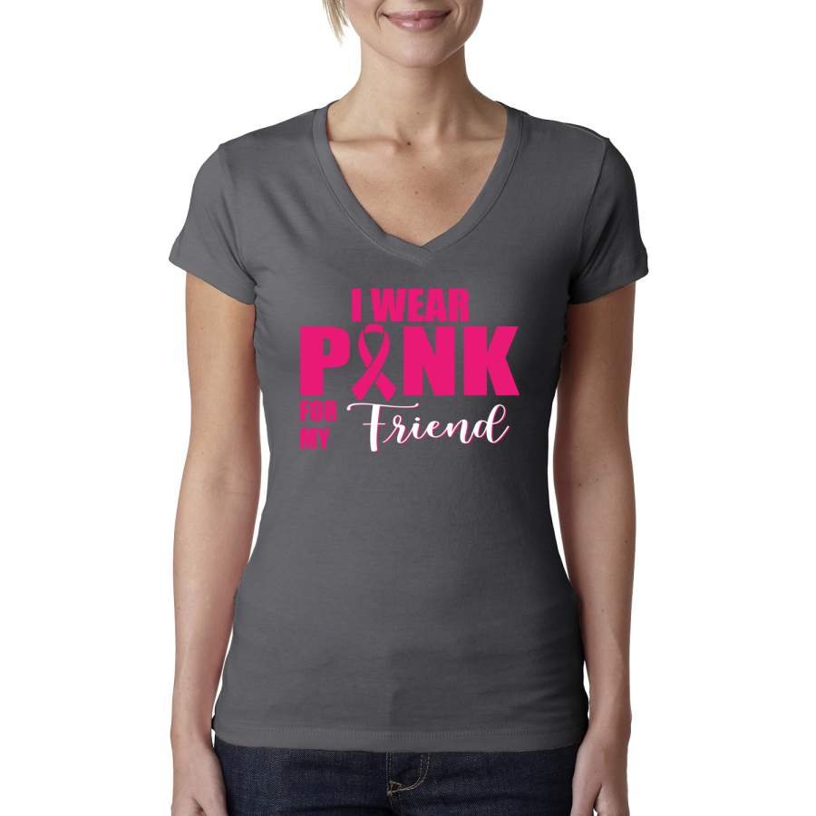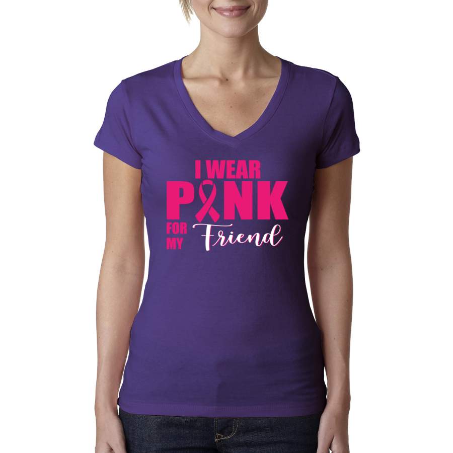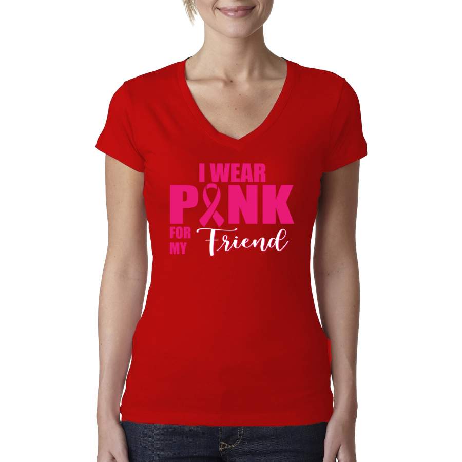 I Wear Pink for My Friends Survivor Breast Cancer Awareness Womens Junior Fit V-Neck Tee