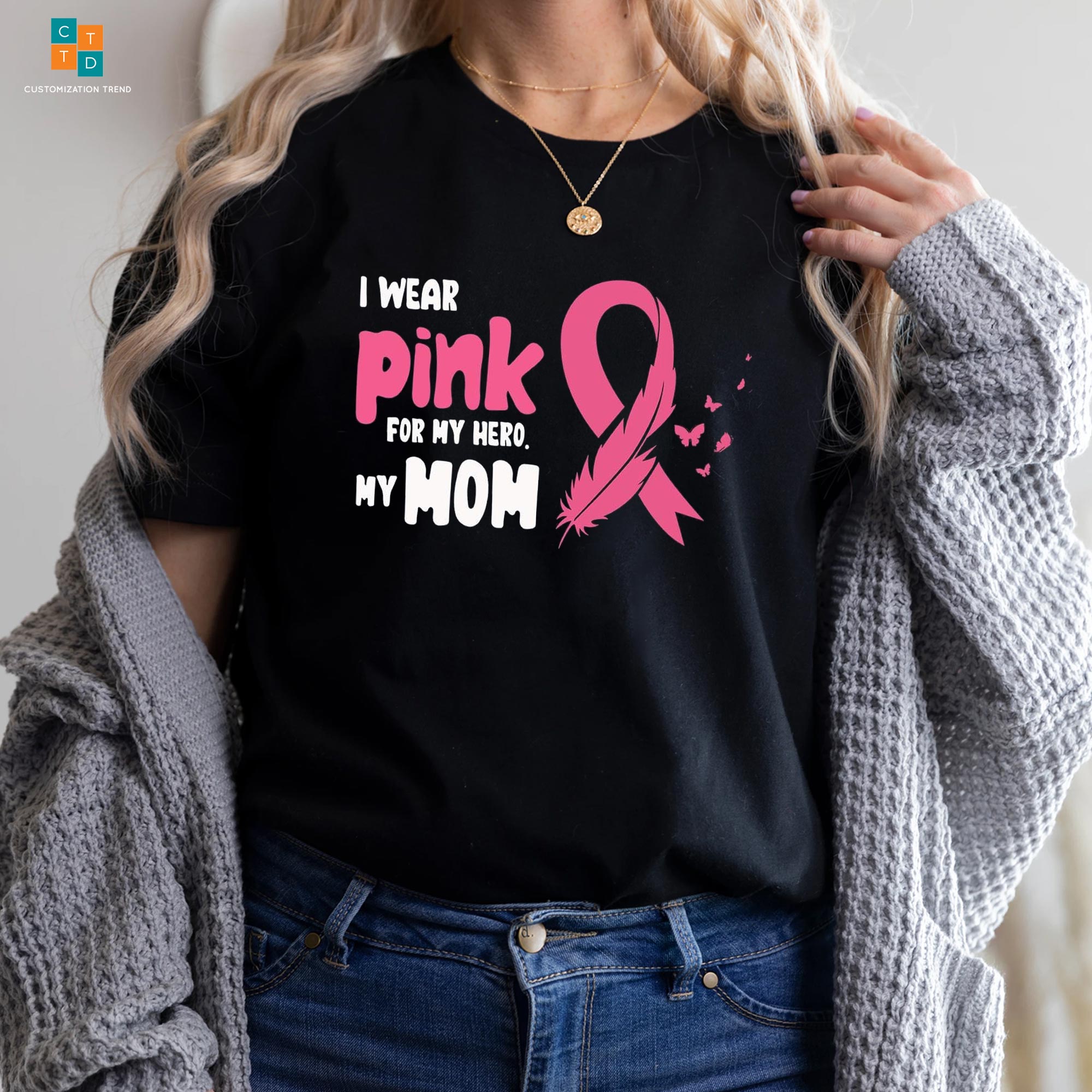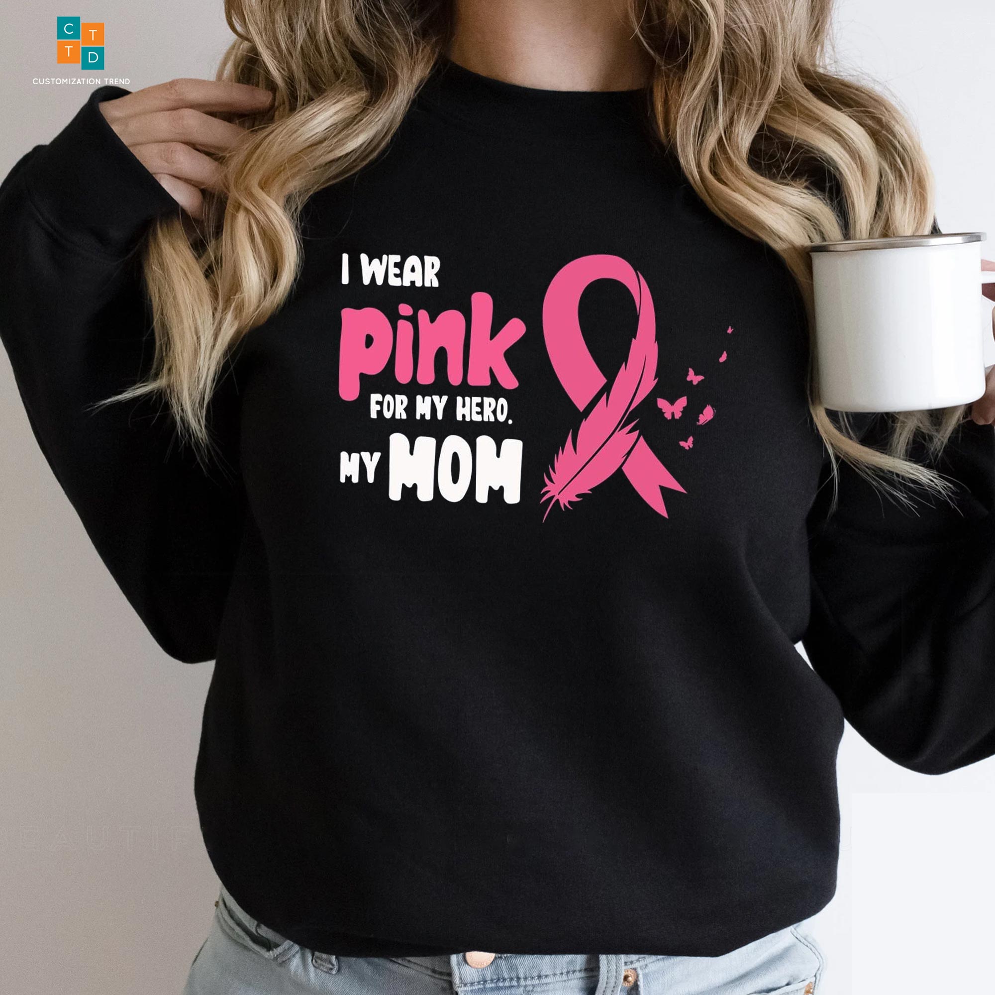 I Wear Pink For My Hero My Mom Breast Cancer Awareness Butterfly Hoodie, Shirt
