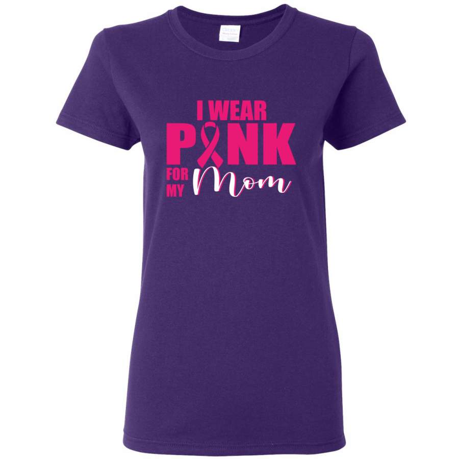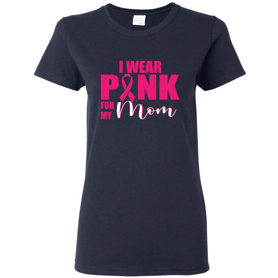 I Wear Pink for My Mom Survivor Breast Cancer Awareness Womens Graphic T-Shirt