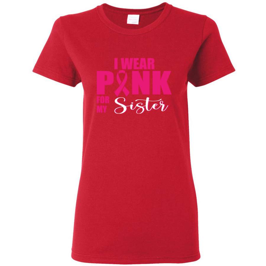 I Wear Pink for My Sisiter Survivor Breast Cancer Awareness Womens Graphic T-Shirt