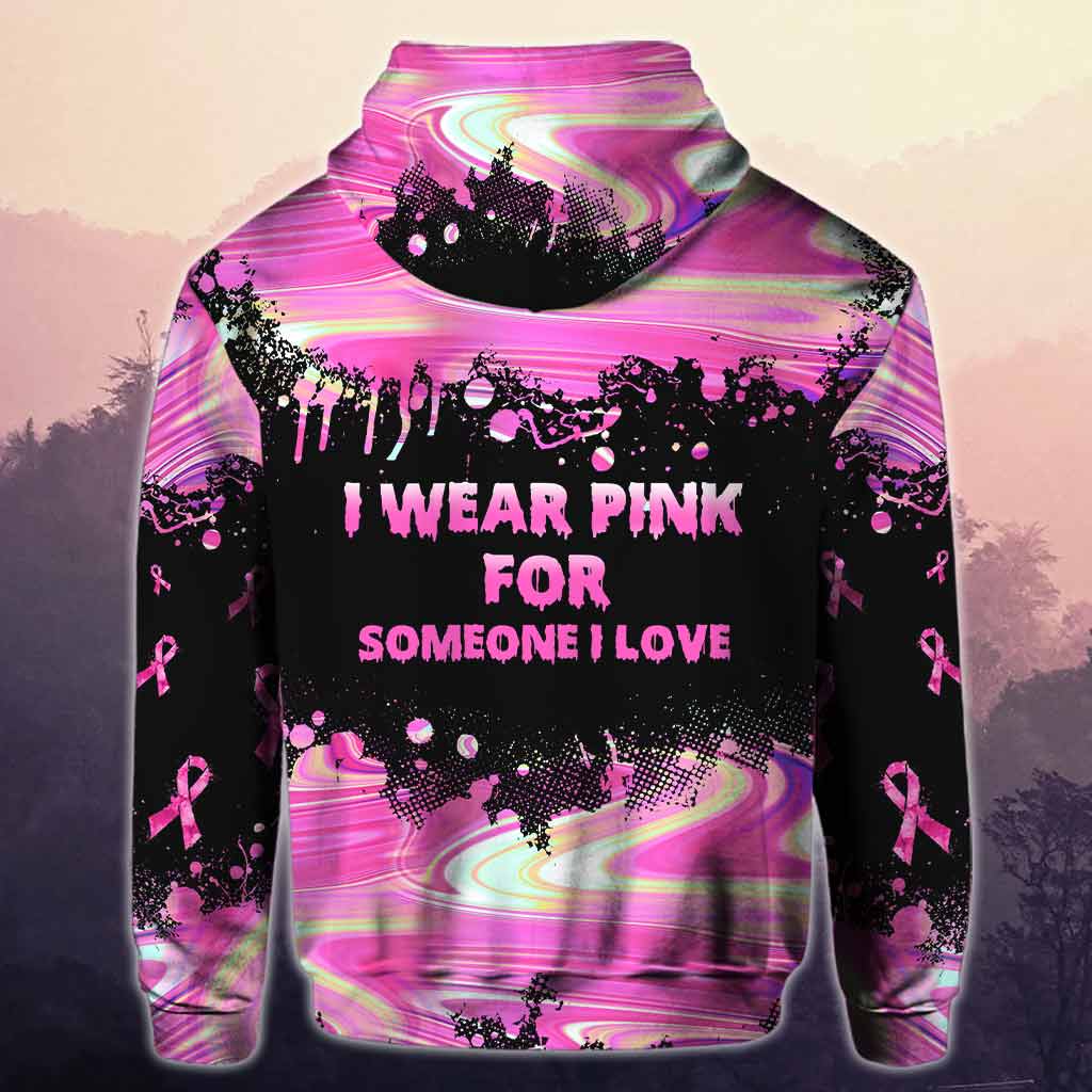 I Wear Pink For Someone I Love Paint Splash – Breast Cancer Awareness Personalized All Over Printed Hoodie