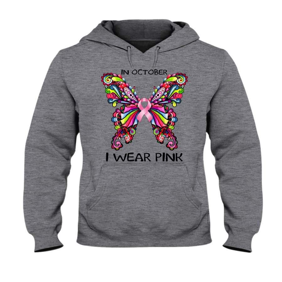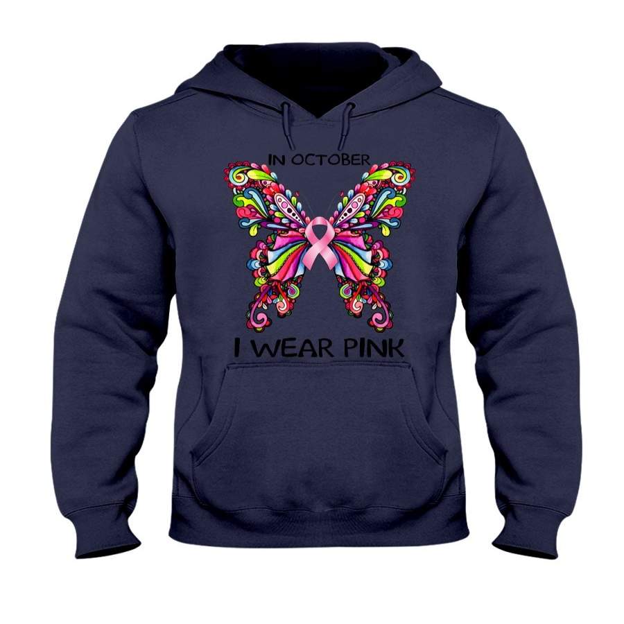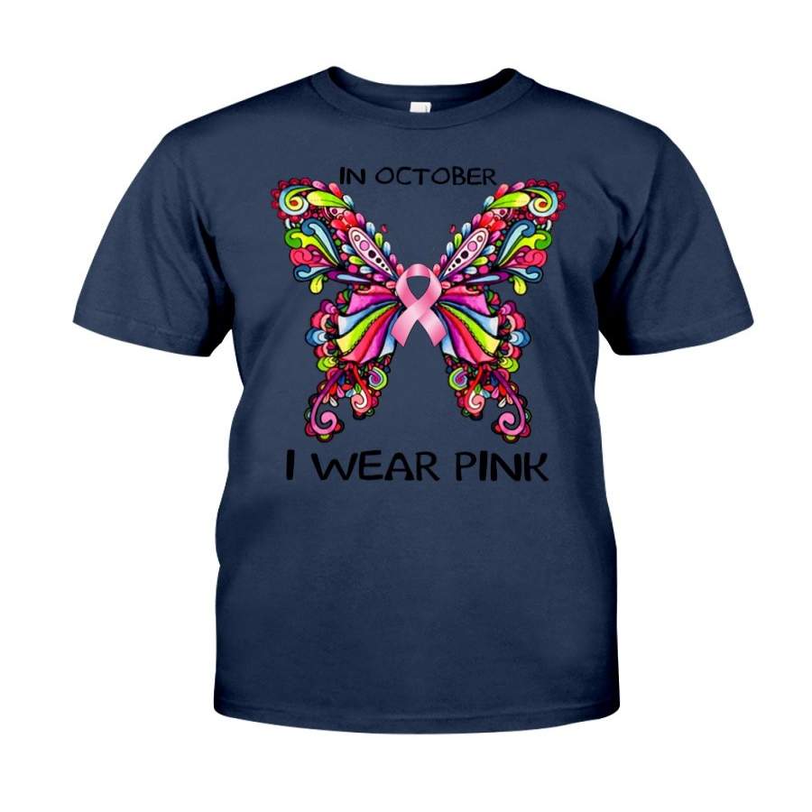 In October I Wear Pink Breast Cancer Awareness Butterfly Shirt