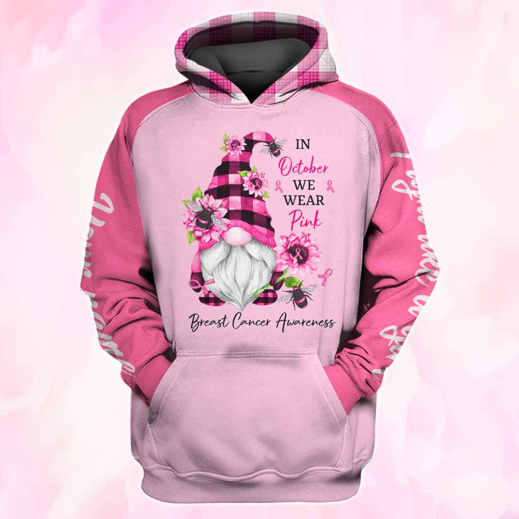 In October We Wear Pink – Breast Cancer Awareness Personalized All Over Printed Hoodie