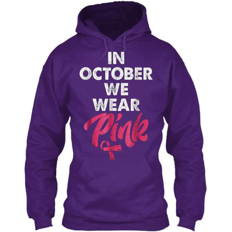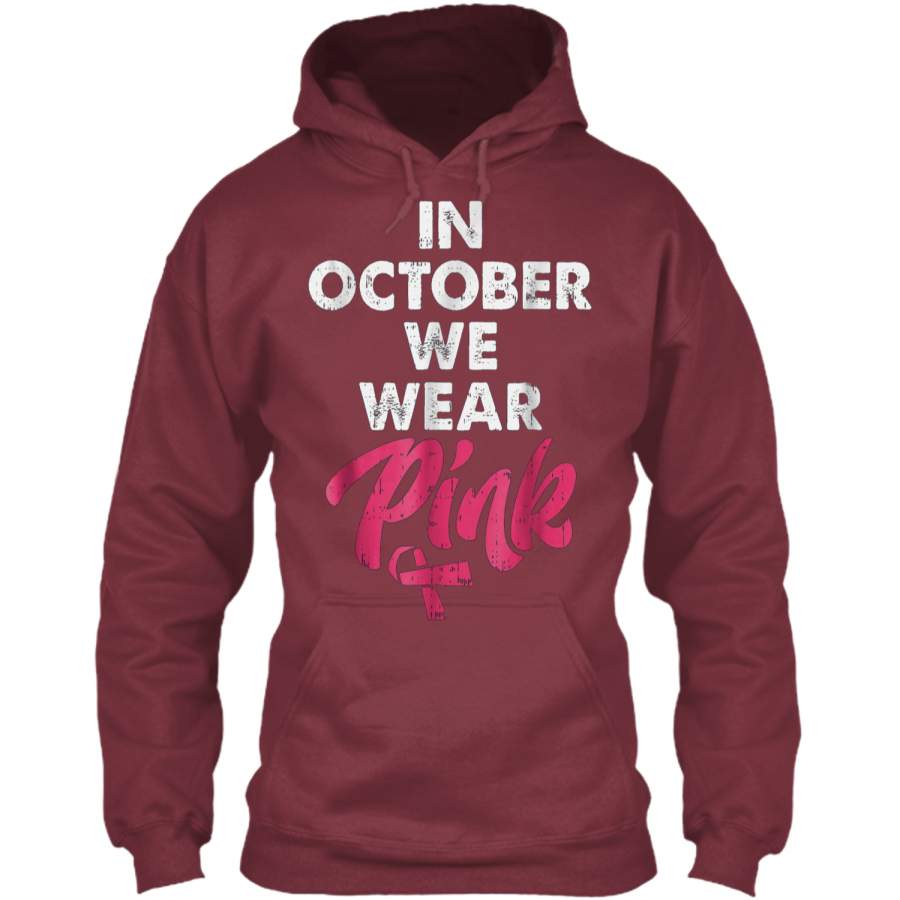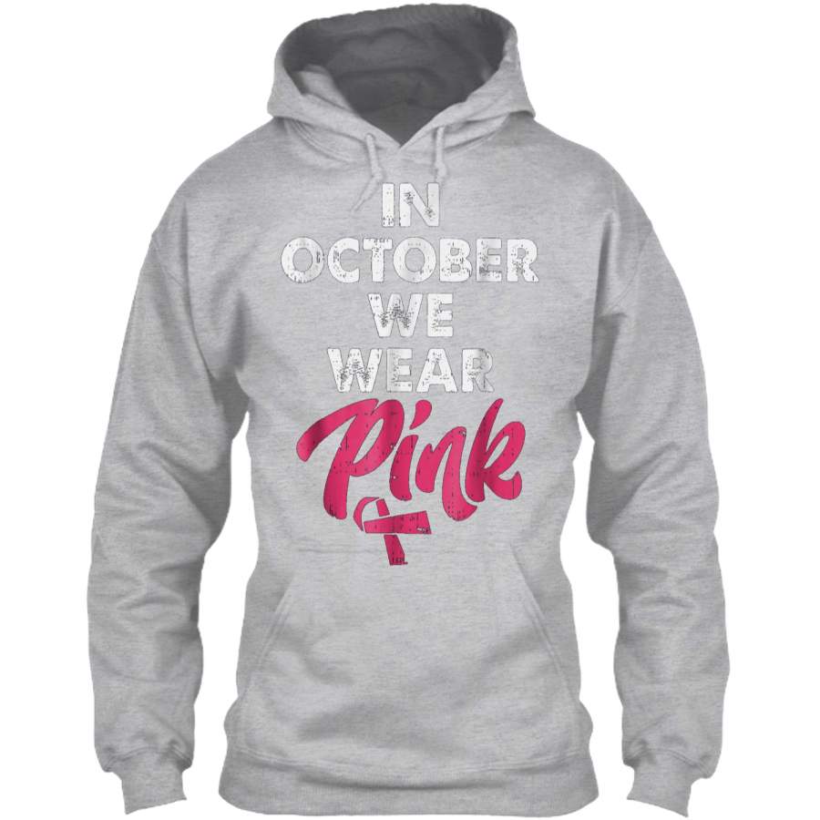 In October We Wear Pink Breast Cancer Awareness Pullover Hoodie 8 oz