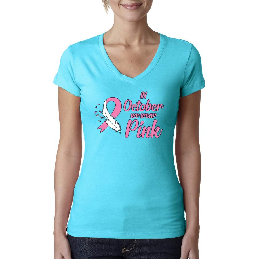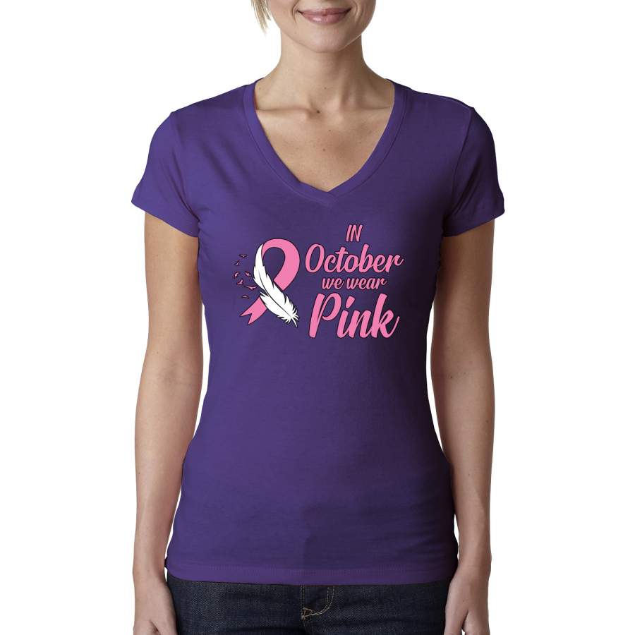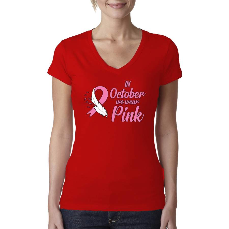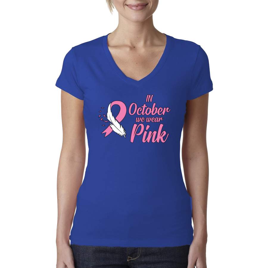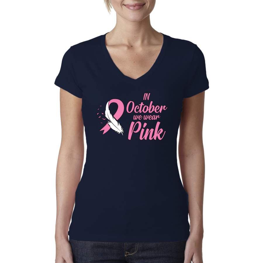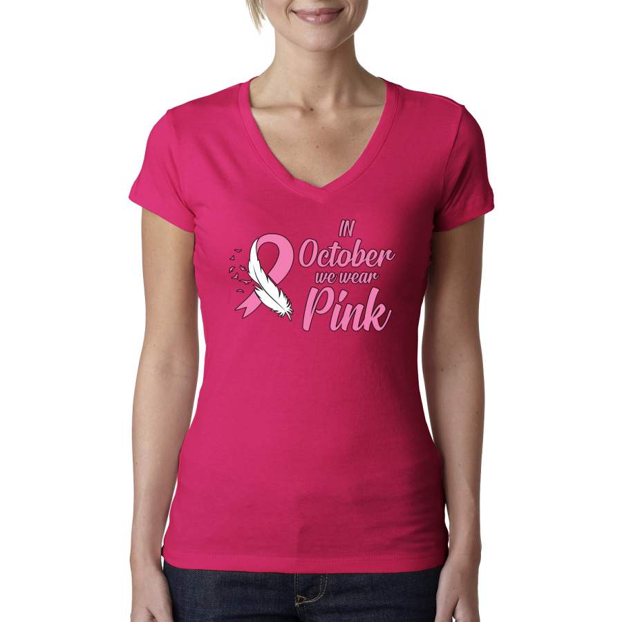 In October We Wear Pink Breast Cancer Awareness Womens Junior Fit V-Neck Tee