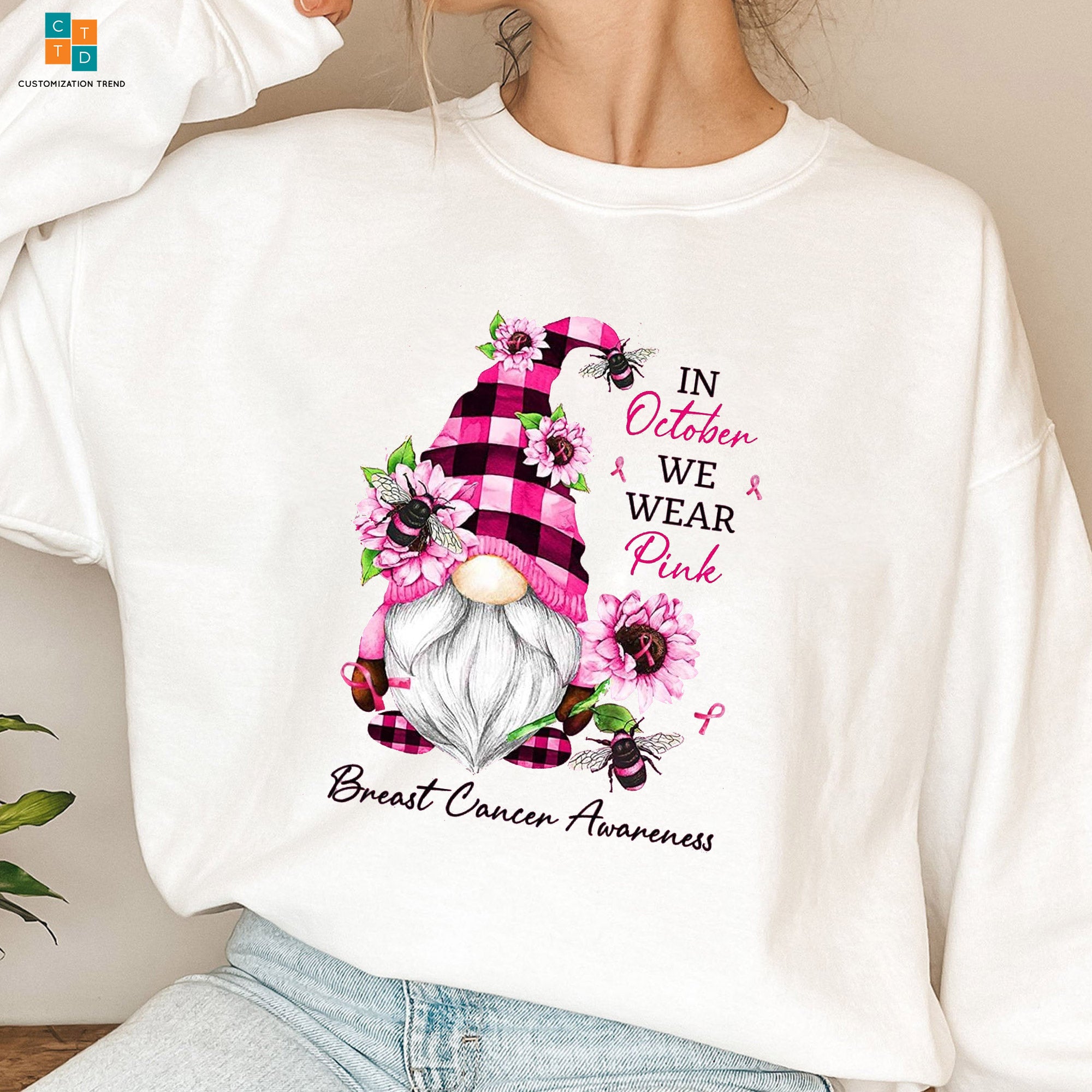 In October We Wear Pink Gnome Breast Cancer Awareness Hoodie, Shirt