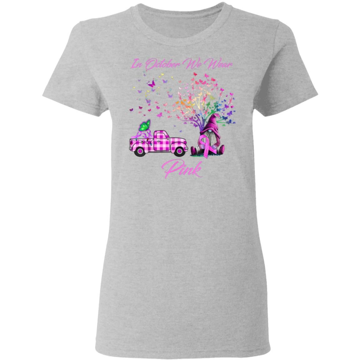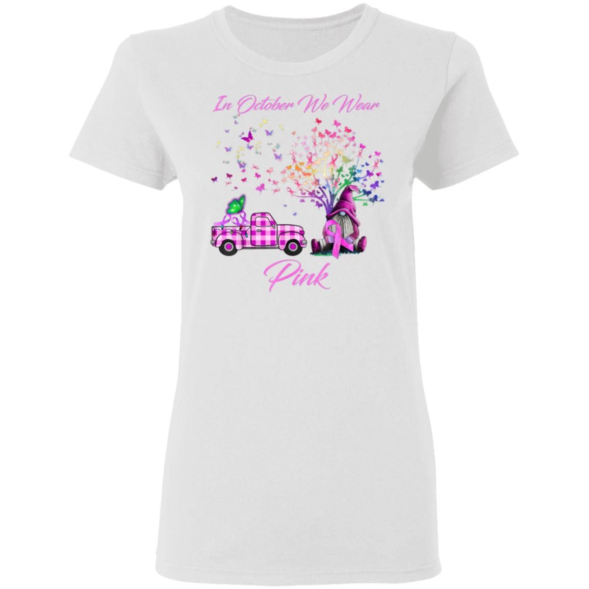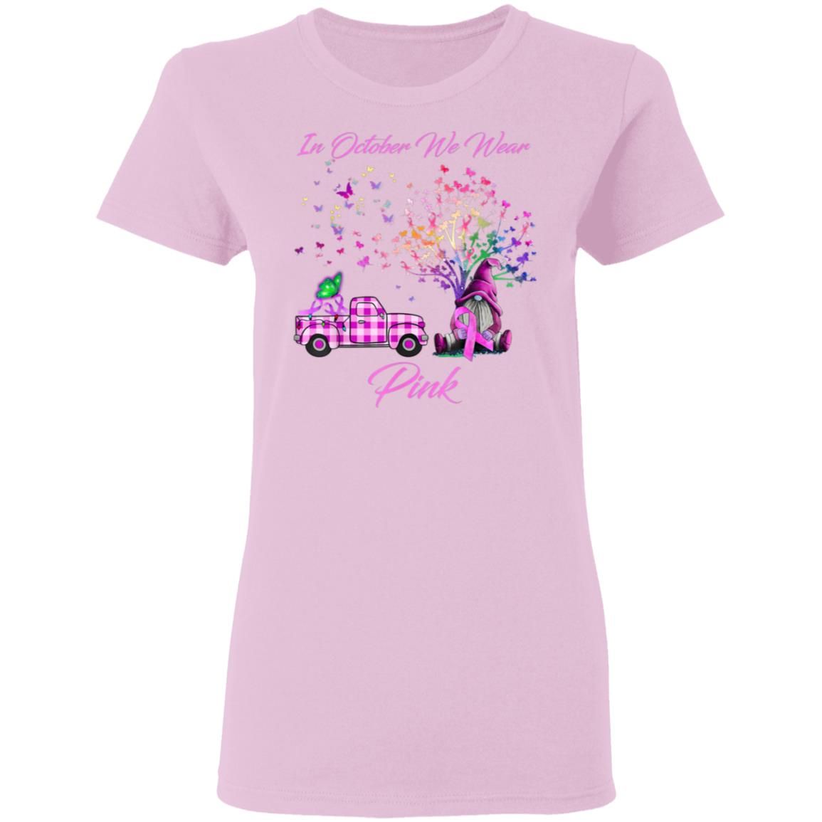 In October We Wear Pink Gnome Tree Breast Cancer Awareness T-Shirt
