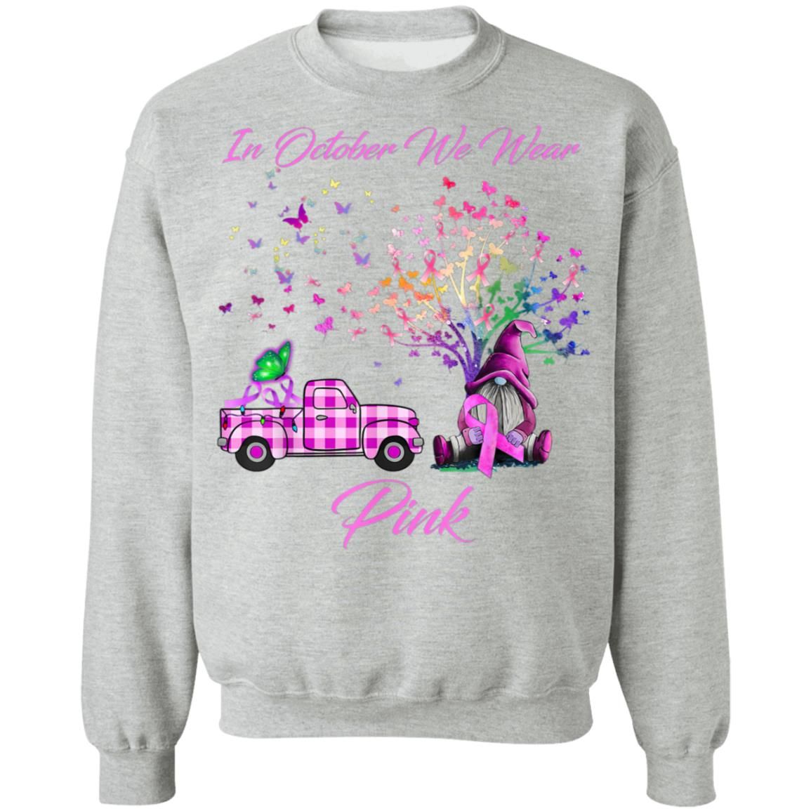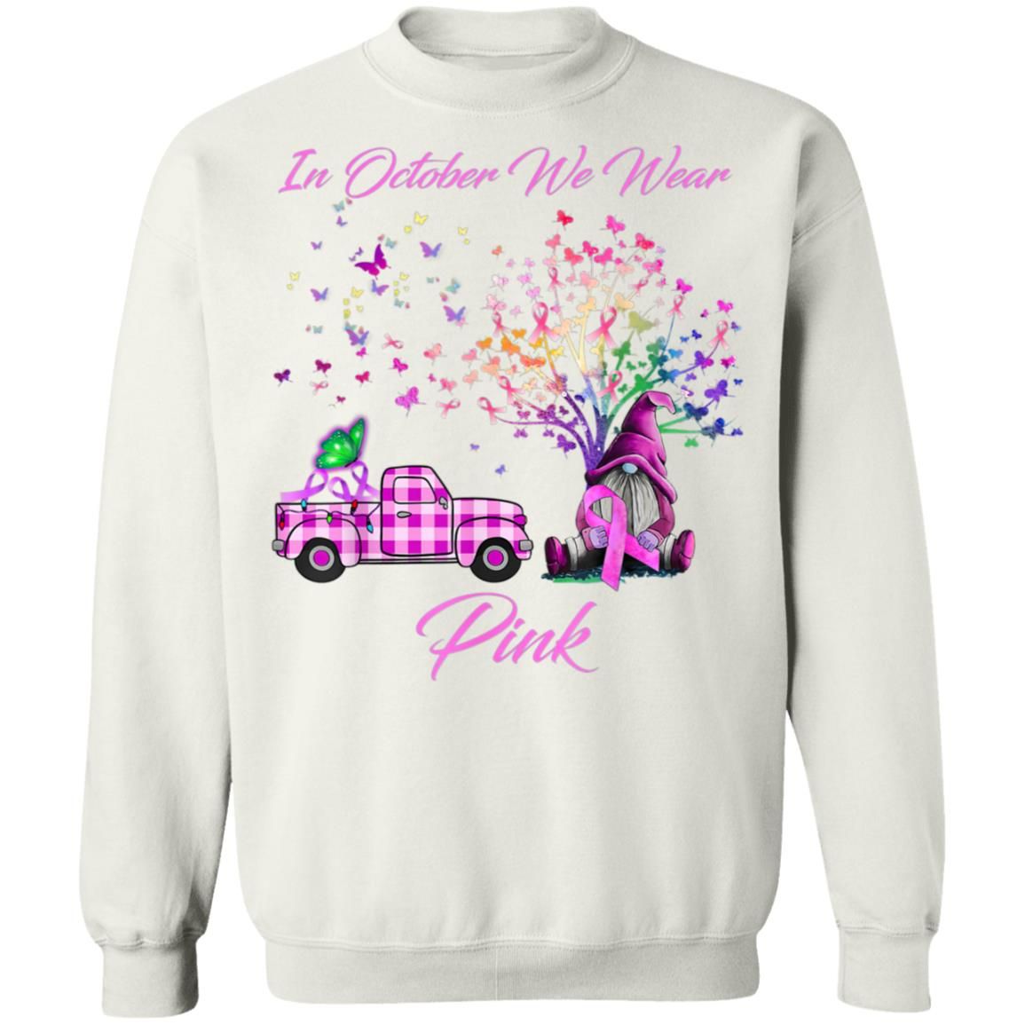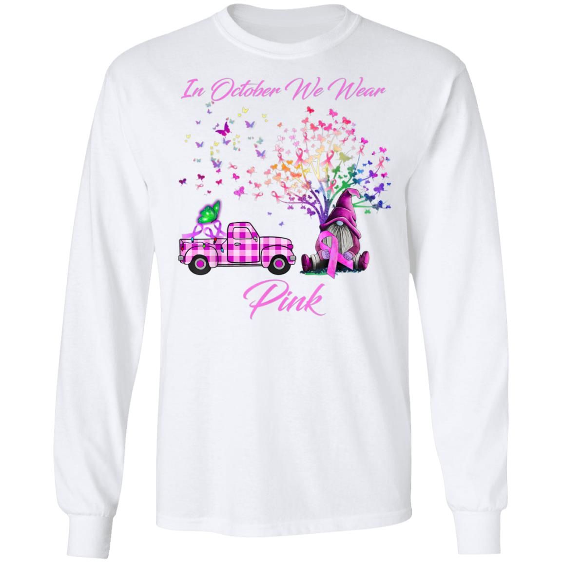 In October We Wear Pink Gnome Tree Breast Cancer Awareness T-Shirt