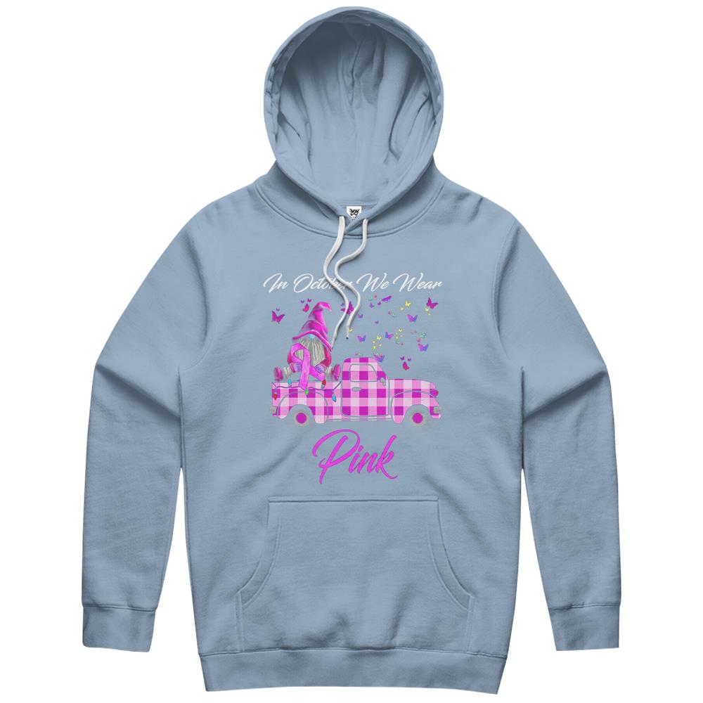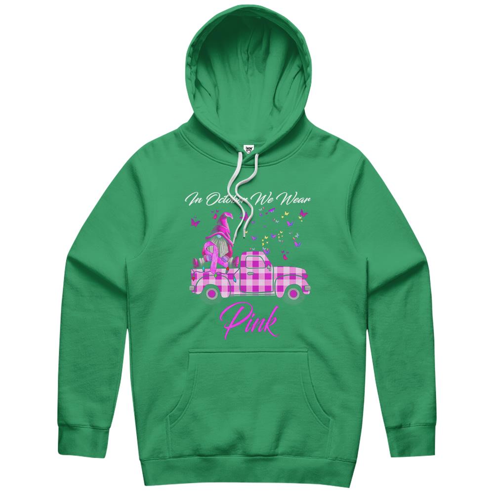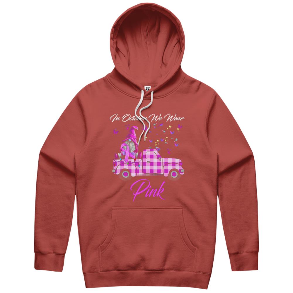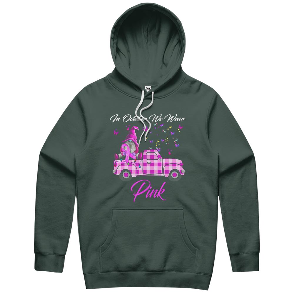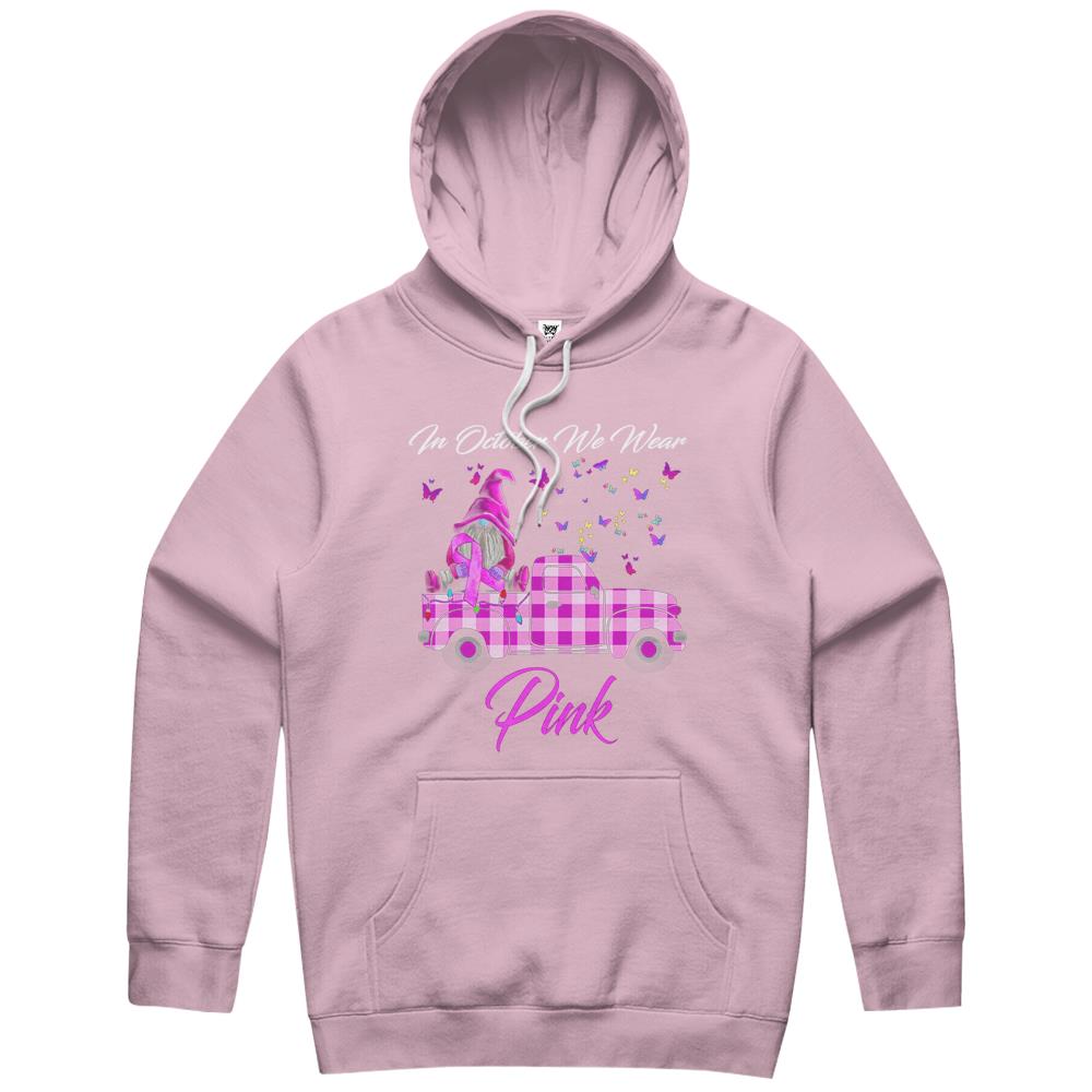 In October We Wear Pink Gnome Truck Breast Cancer Awareness Hoodie