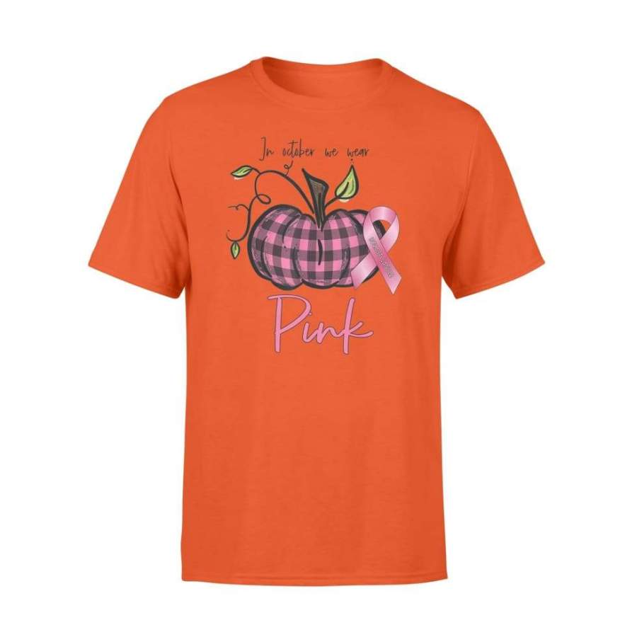 In October We Wear Pink Pumpkin Breast Cancer Awareness Gift Shirt For Men Women – Standard T-shirt