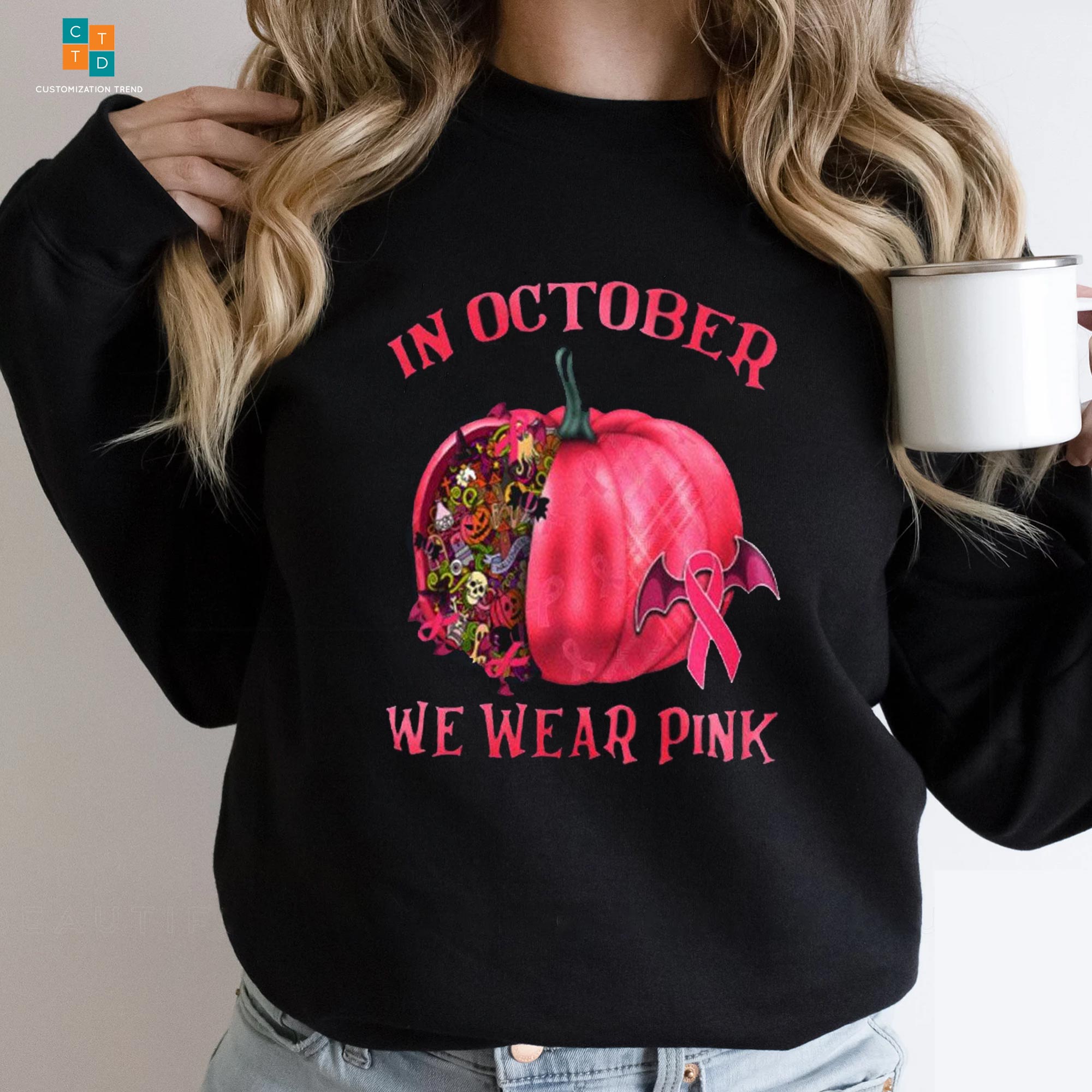 In October We Wear Pink Pumpkin Breast Cancer Awareness Hoodie, Shirt