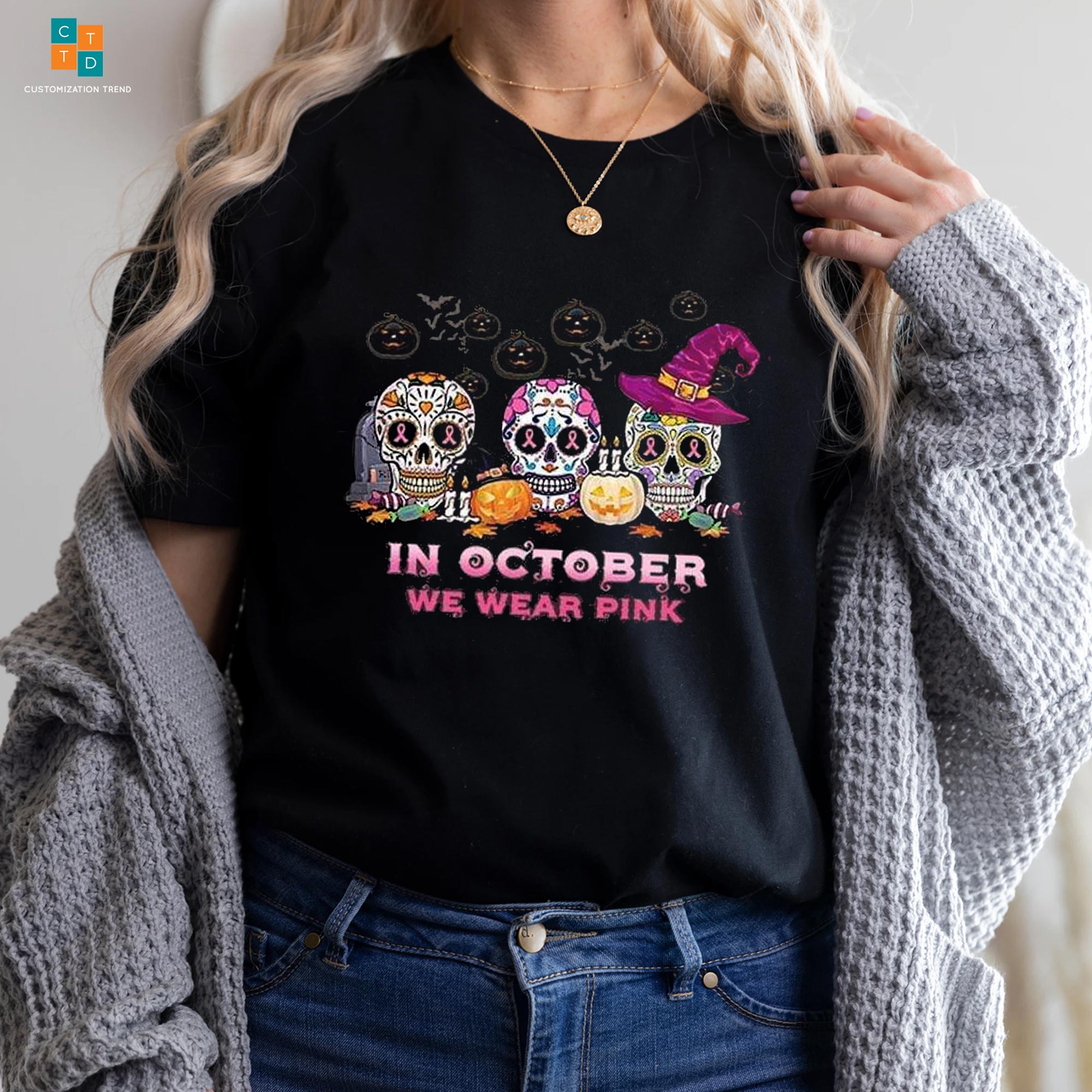In October We Wear Pink Skull Breast Cancer Awareness Hoodie, Shirt