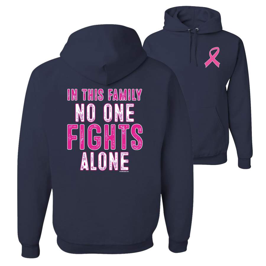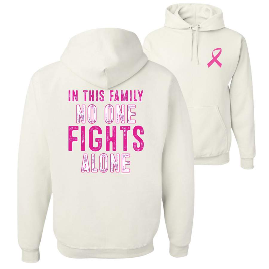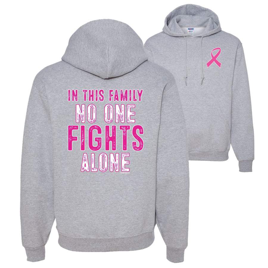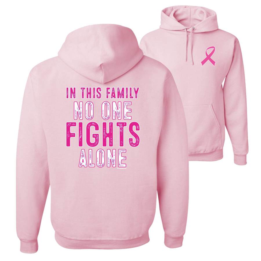 In This Family No One Fights Alone Breast Cancer Awareness Front and Back Unisex Graphic Hoodie Sweatshirt