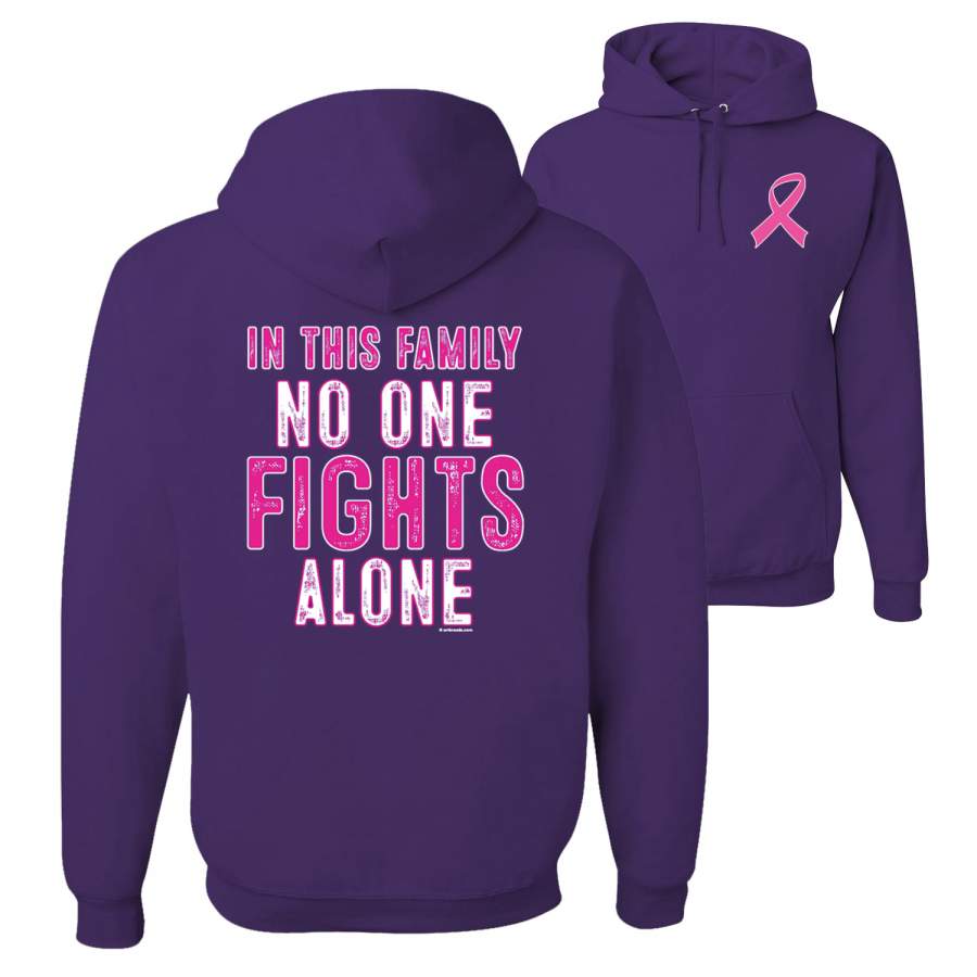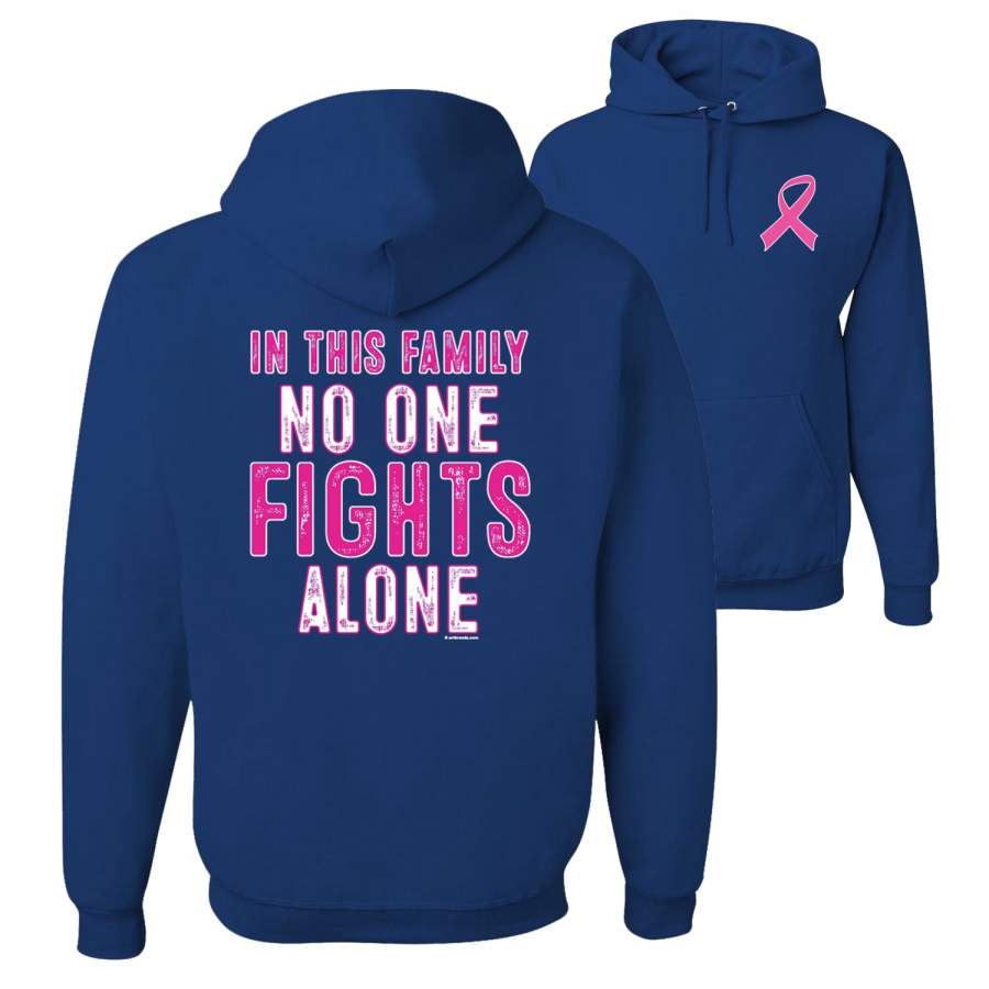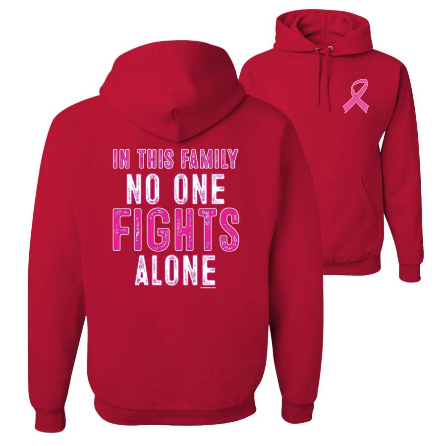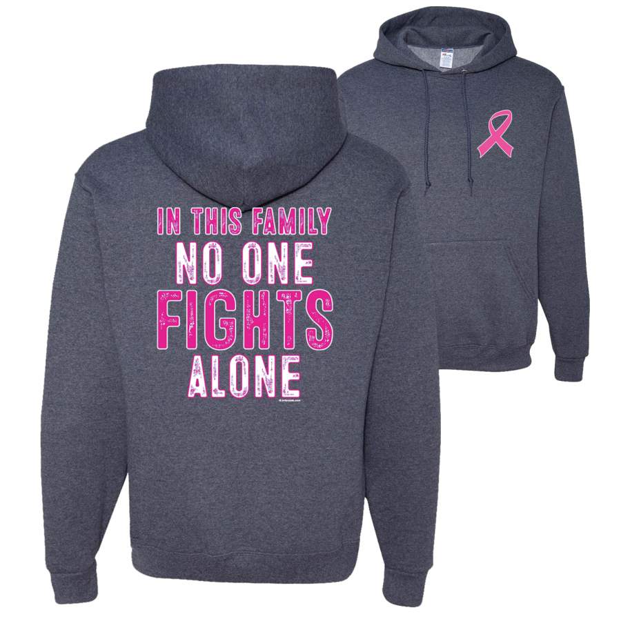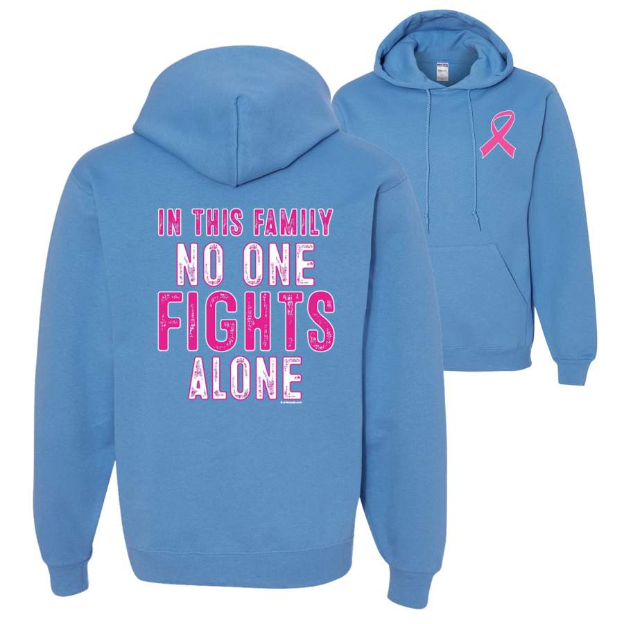 In This Family No One Fights Alone Breast Cancer Awareness Front and Back Unisex Graphic Hoodie Sweatshirt