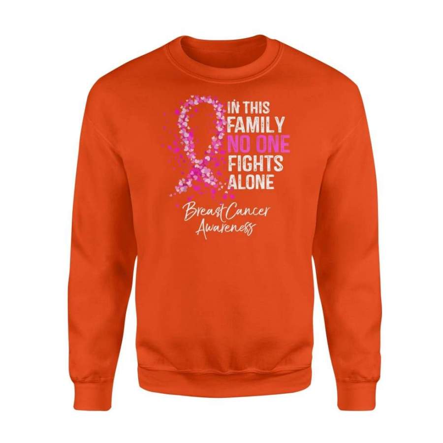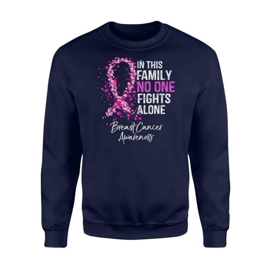 In This Family No One Fights Alone Breast Cancer Awareness Shirt For Men Women – Standard Fleece Sweatshirt