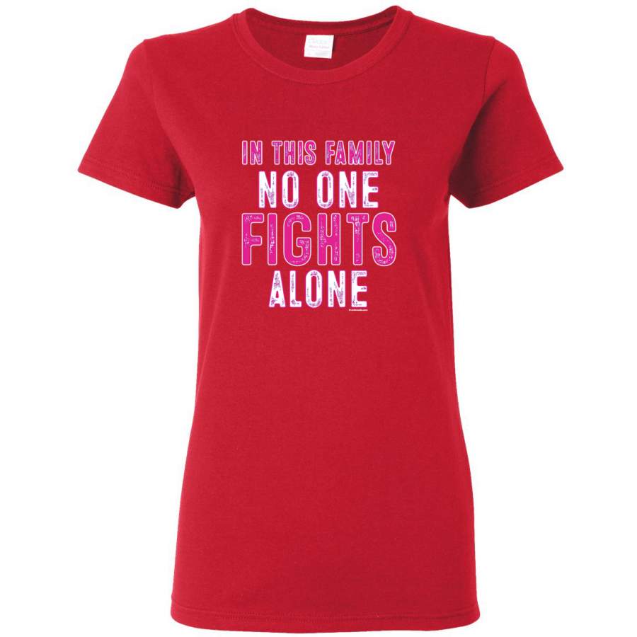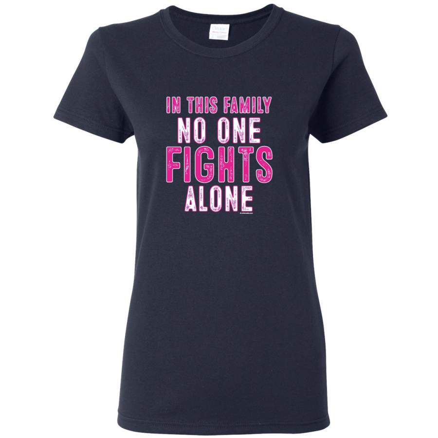 In This Family No One Fights Alone Breast Cancer Awareness Womens Graphic T-Shirt