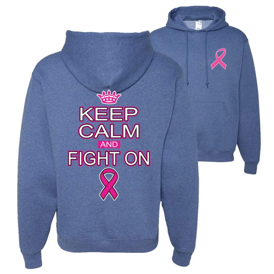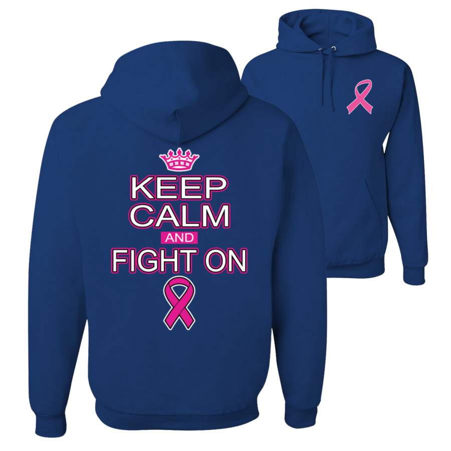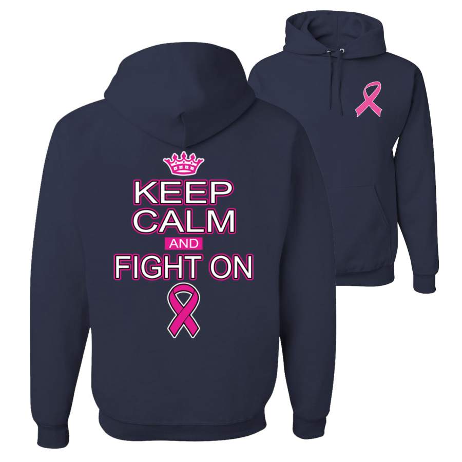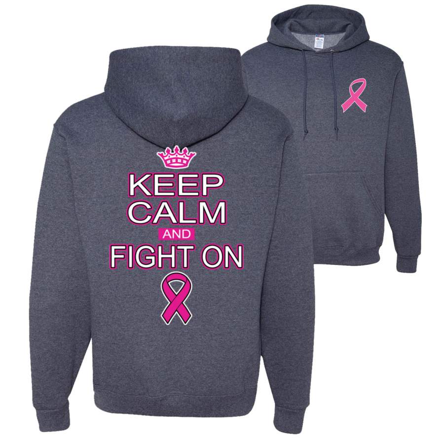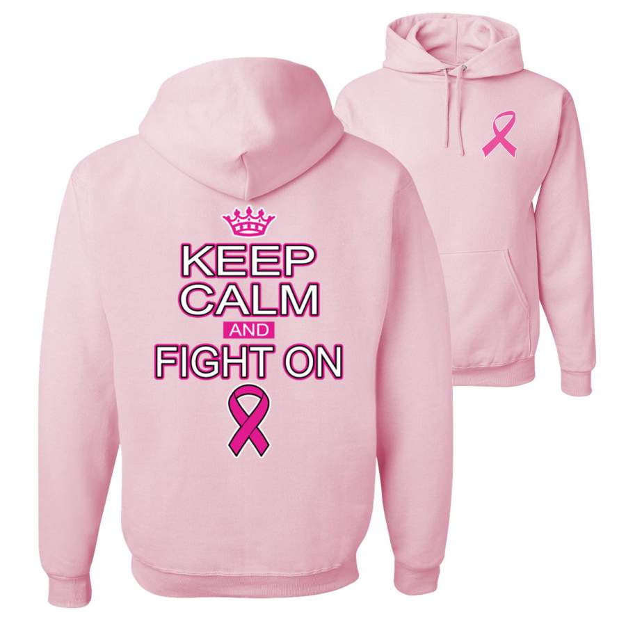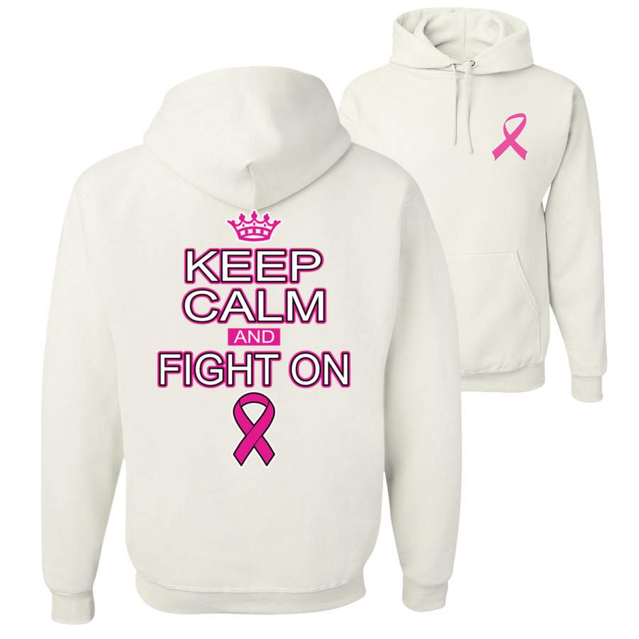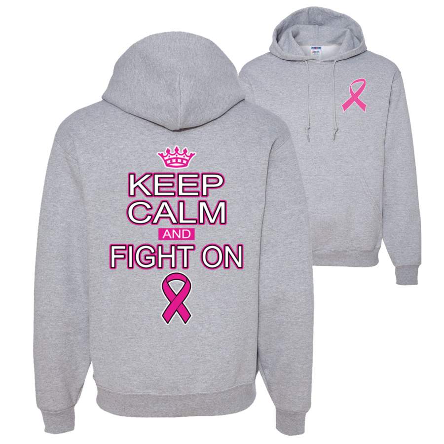 Keep Calm and Fight On Breast Cancer Awareness Front and Back Unisex Graphic Hoodie Sweatshirt