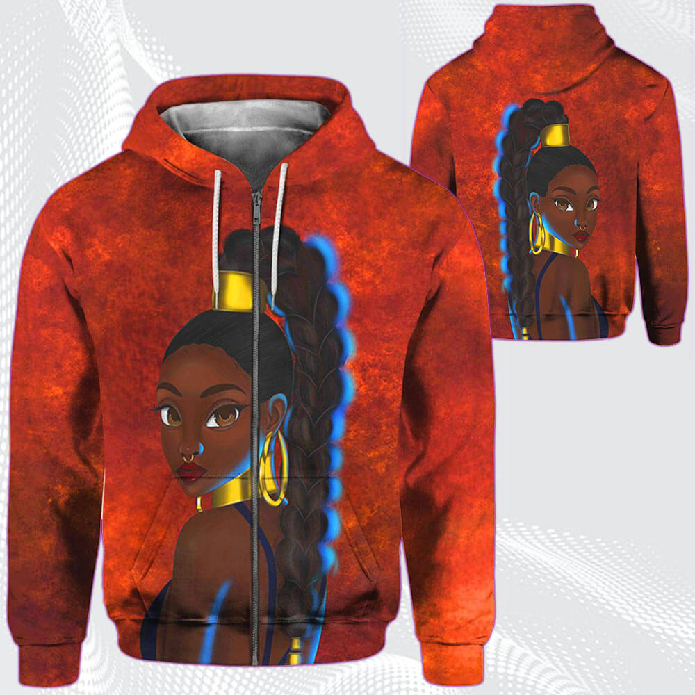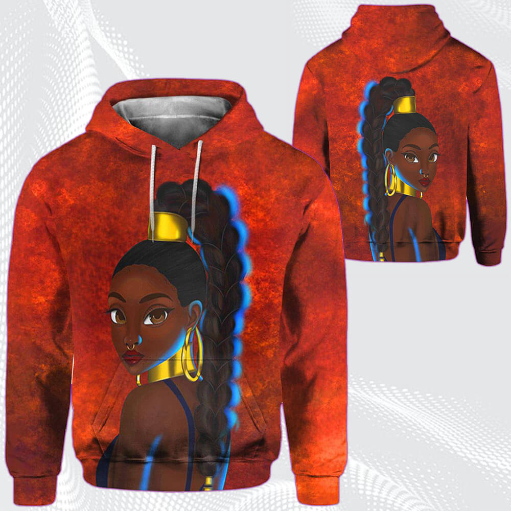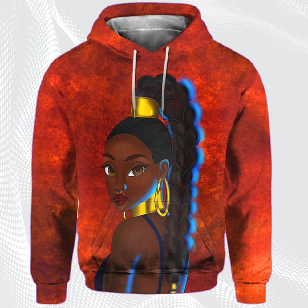 Modern African Dresses Beautiful Afro American Woman Black Girl Magic All Over Print Womens Hooded Sweatshirt African American Women Long Locs Hair Magic African Print Styles