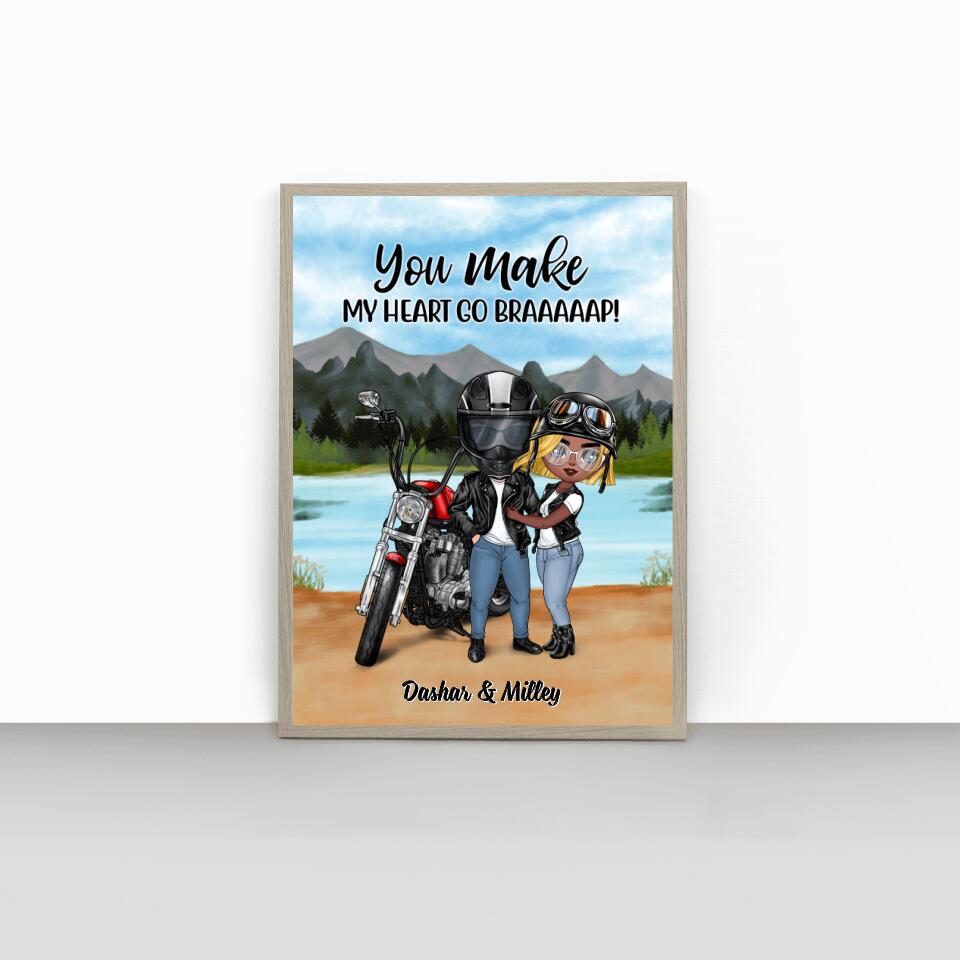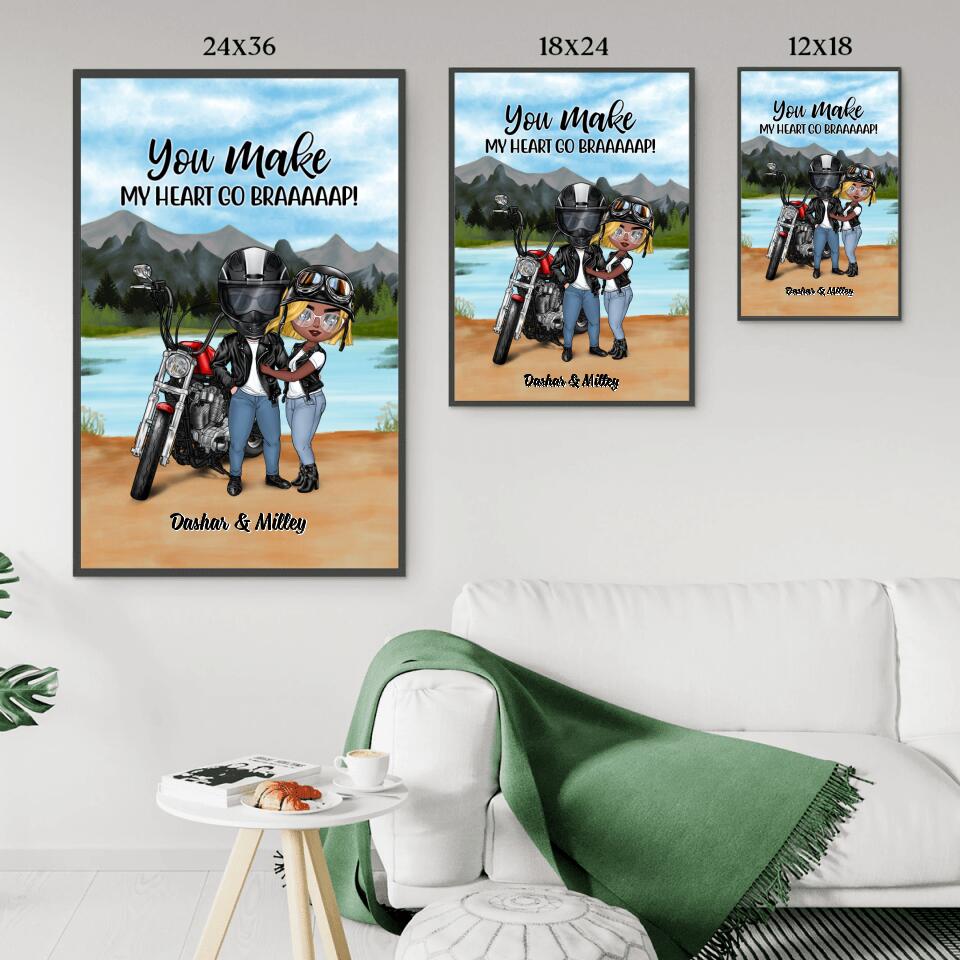 Motorcycle Couple Hugging, Riding Partners – Personalized Poster For Motorcycle Lovers, Bikers