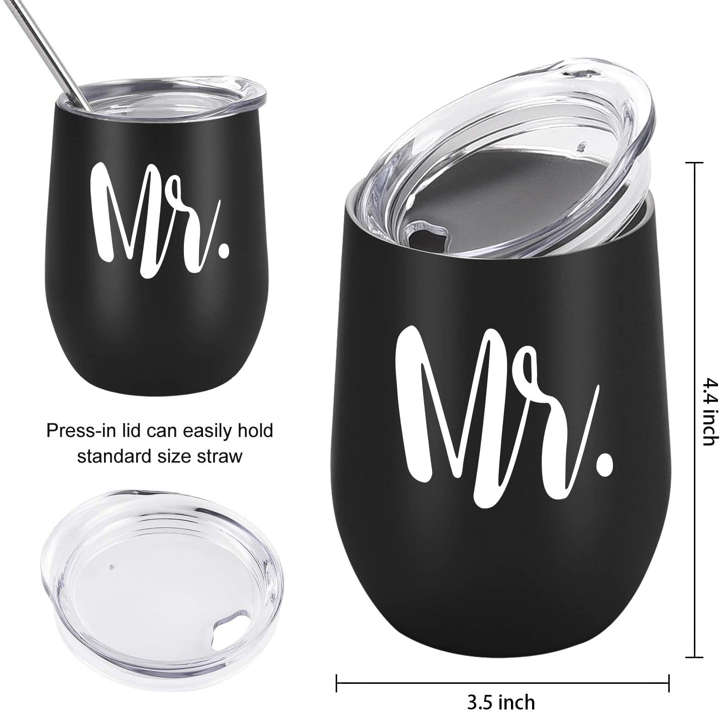 Mr And Mr Wine Tumbler, Gay Couple Tumbler For Men, Gay Pride Tumbler 12 Oz Insulated Stainless Steel Wine Tumbler With Lid, Black
